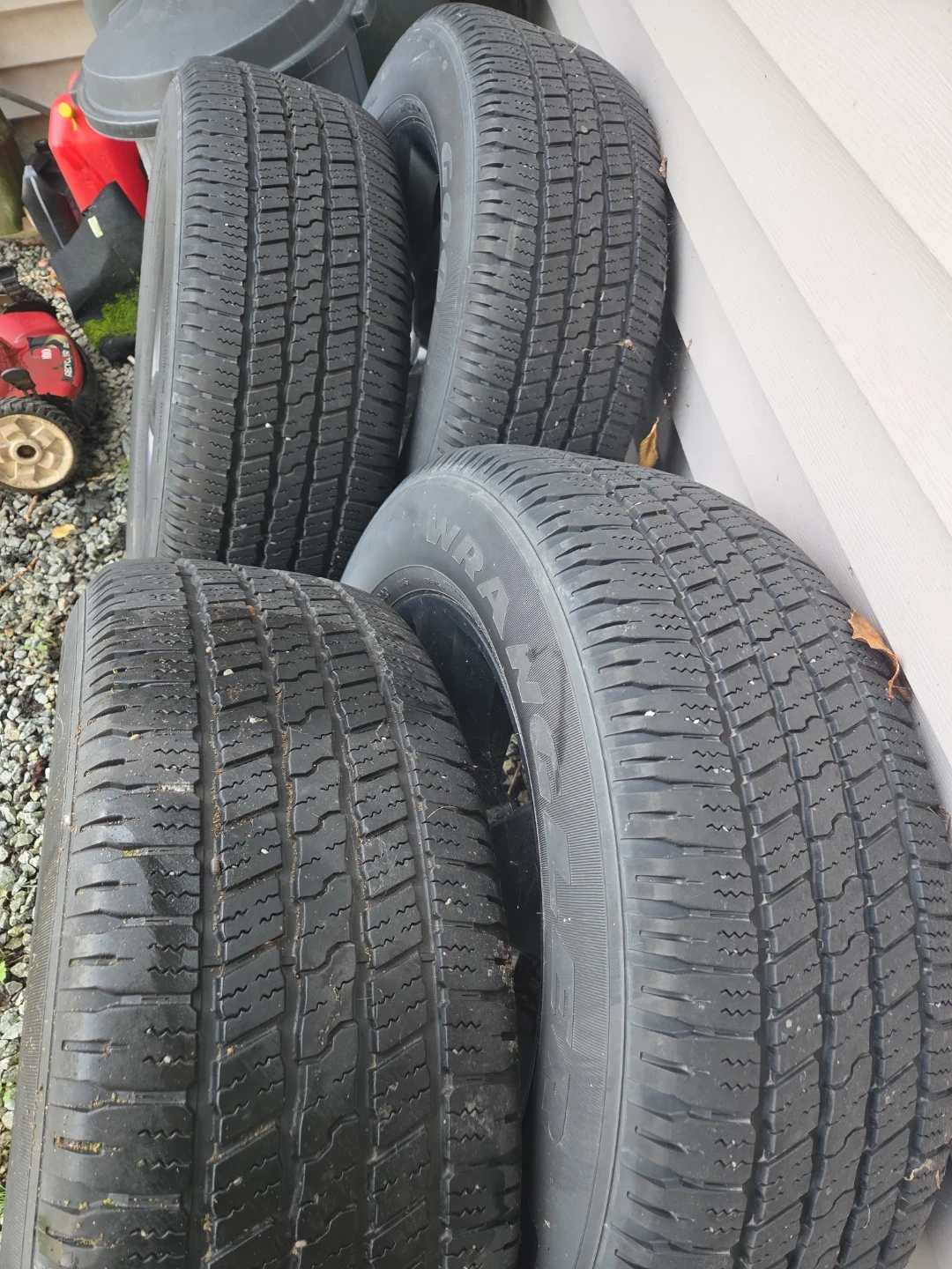 10Selling a set of four Goodyear Wrangler tires. They're in good condition and ready to be put to use!
