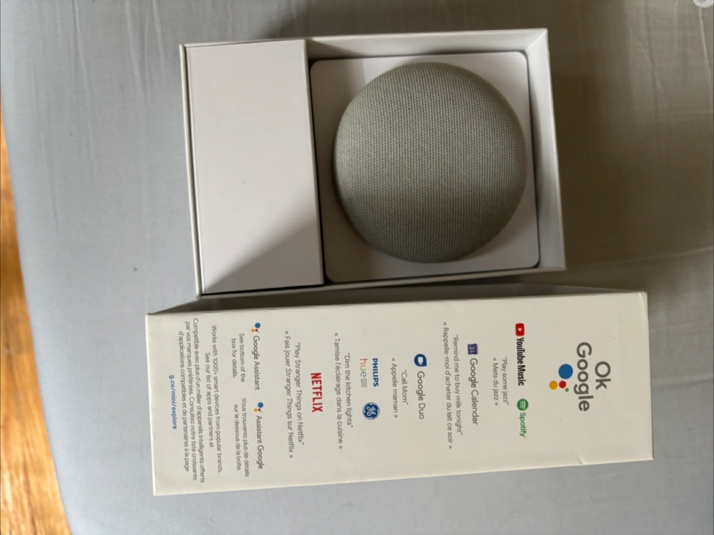 11Selling a like-new Google Nest Mini (2nd generation) in its original box! It's in perfect condition and ready to connect to your smart home. Works with YouTube Music, Spotify, Google Calendar, Google Duo, Philips Hue and Netflix. Get hands-free help from Google Assistant!