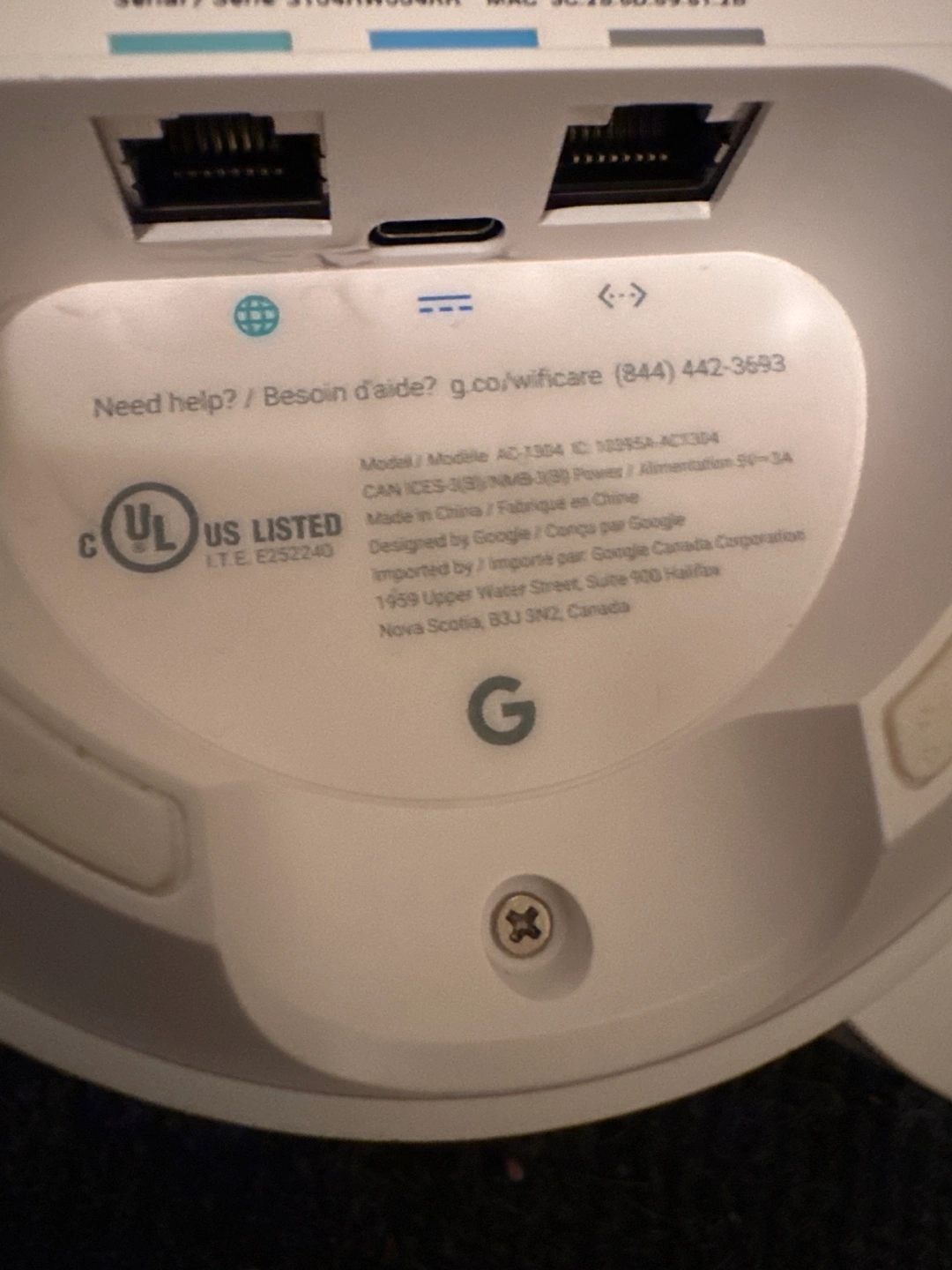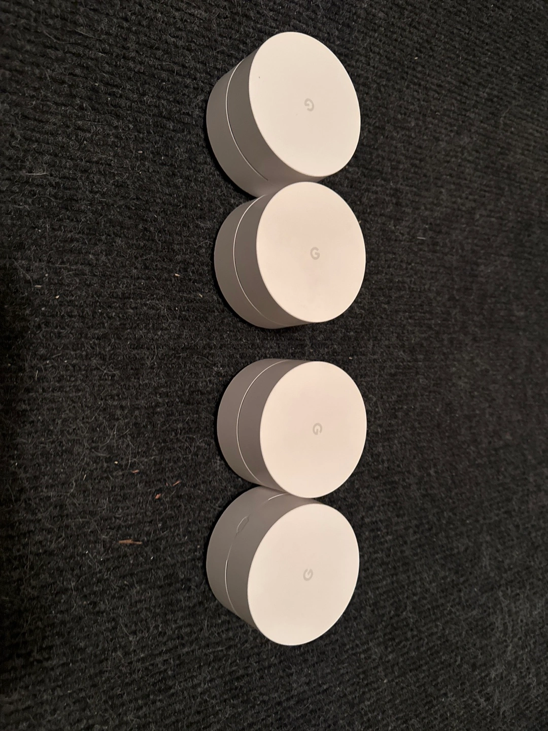 Selling a set of four Google mesh Wifi AC1304 routers. They're in great shape and ready to boost your home network! The model number is AC-1304.