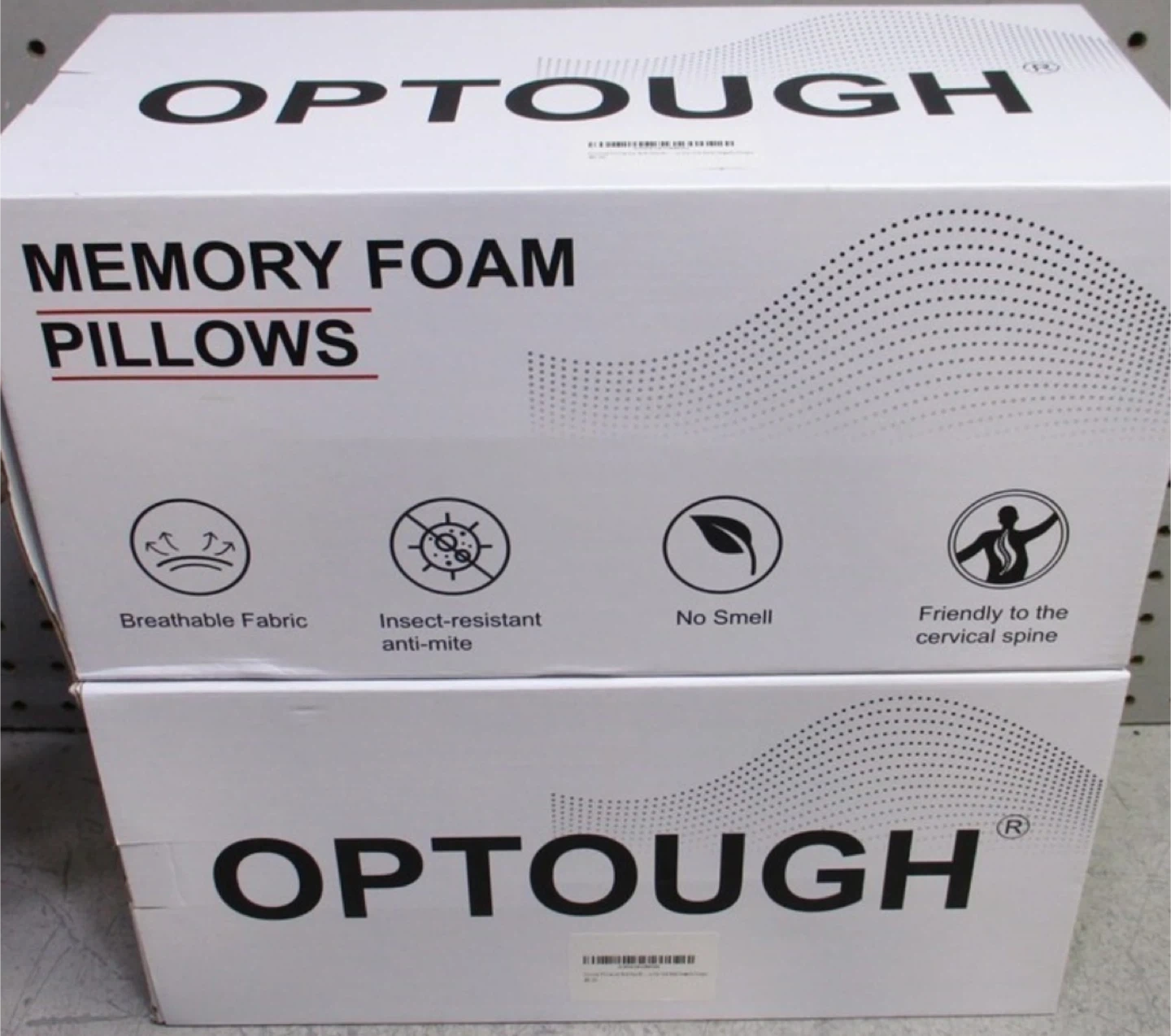 This is an Optough memory foam pillow, offering breathable and super comfortable support. It features a 100% slow rebound memory foam core and a machine-washable pillowcase with a high-quality zipper. It's friendly to the cervical spine and designed for back, side, and stomach sleeping.
