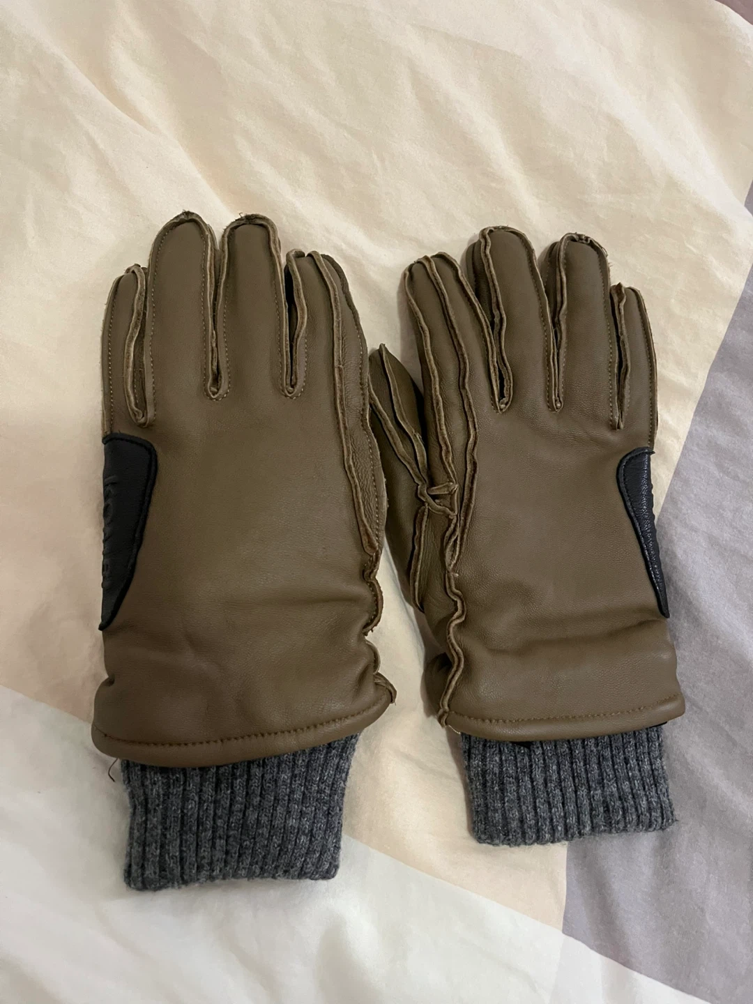 These Kombi gloves are made from leather with a ribbed knit cuff for warmth. They feature a black accent patch on the palm. Perfect for keeping your hands cozy on chilly days!