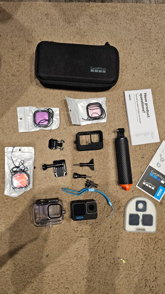 65Selling my GoPro Hero10 Black with a full set of premium accessories. Everything is in excellent, like-new condition and works perfectly. Used only a few times — no scratches, no issues. No SD card included. Includes: GoPro Hero10 Black (5.3K60 / 4K120 video, 23MP photos, HyperSmooth 4.0 stabilization) Original GoPro hard case Waterproof housing (for deep diving) Floating hand grip 3 underwater color-correction filters (red, magenta, and snorkel) UV and CPL (polarizing) filters Protective silicone sleeve with lanyard Mounting clips and screws Manuals and original packaging GoPro Hero10 Key Specs: 23MP photos, 5.3K video at 60fps, 4K at 120fps, 2.7K at 240fps HyperSmooth 4.0 advanced stabilization Front and rear touch displays Waterproof to 33ft (10m) without housing GP2 processor for double performance speed TimeWarp 3.0, 8x slow motion, and Hindsight capture USB-C charging and built-in mounting fingers Perfect for travel, underwater, sports, or professional content creation — everything you need to shoot right out of the box. Condition: Like new