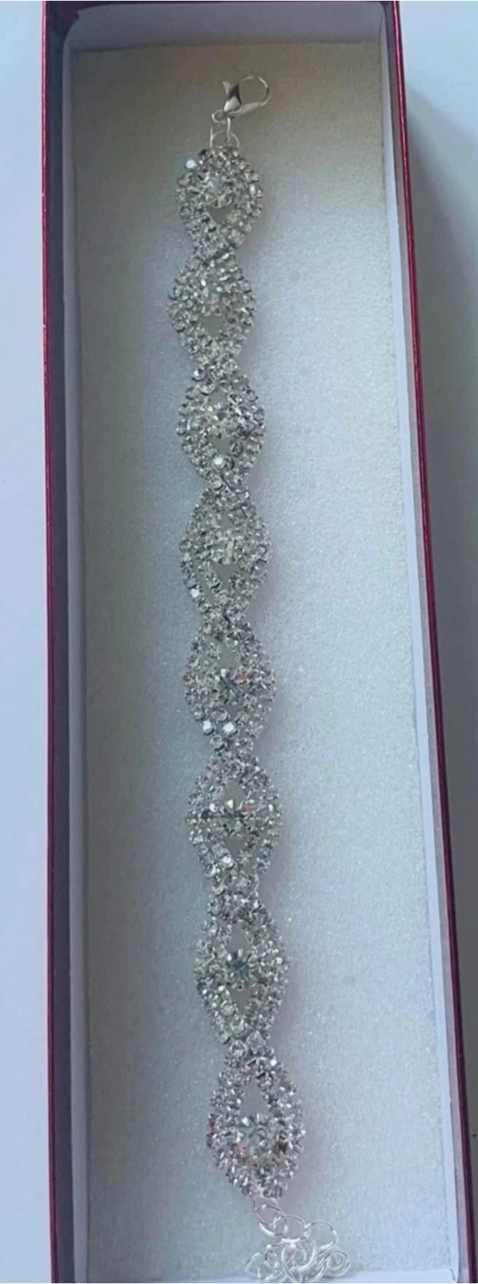 Selling a gorgeous rhinestone bracelet! It's brand new and comes in a box. Perfect for adding a bit of sparkle to any outfit.