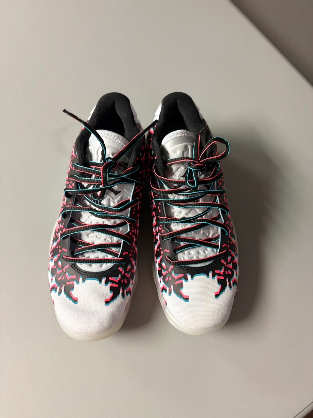 This air Jordan Zion 3 are looking for a new home! They feature a unique design with black, white, and pink accents. Perfect for adding a pop of colour to your athletic wear.