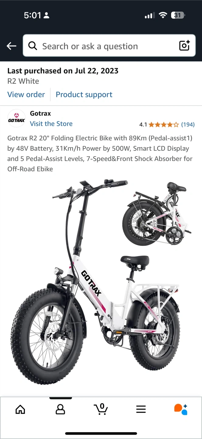 65Barely used foldable electric bike, it has 295km in the odometer. Bought if from amazon 2 years ago. Is in pretty good conditions and comes with its charger. Bought it for 1099CAD. For more info about the bike you can check the amazon link: https://a.co/d/bXFGIUI