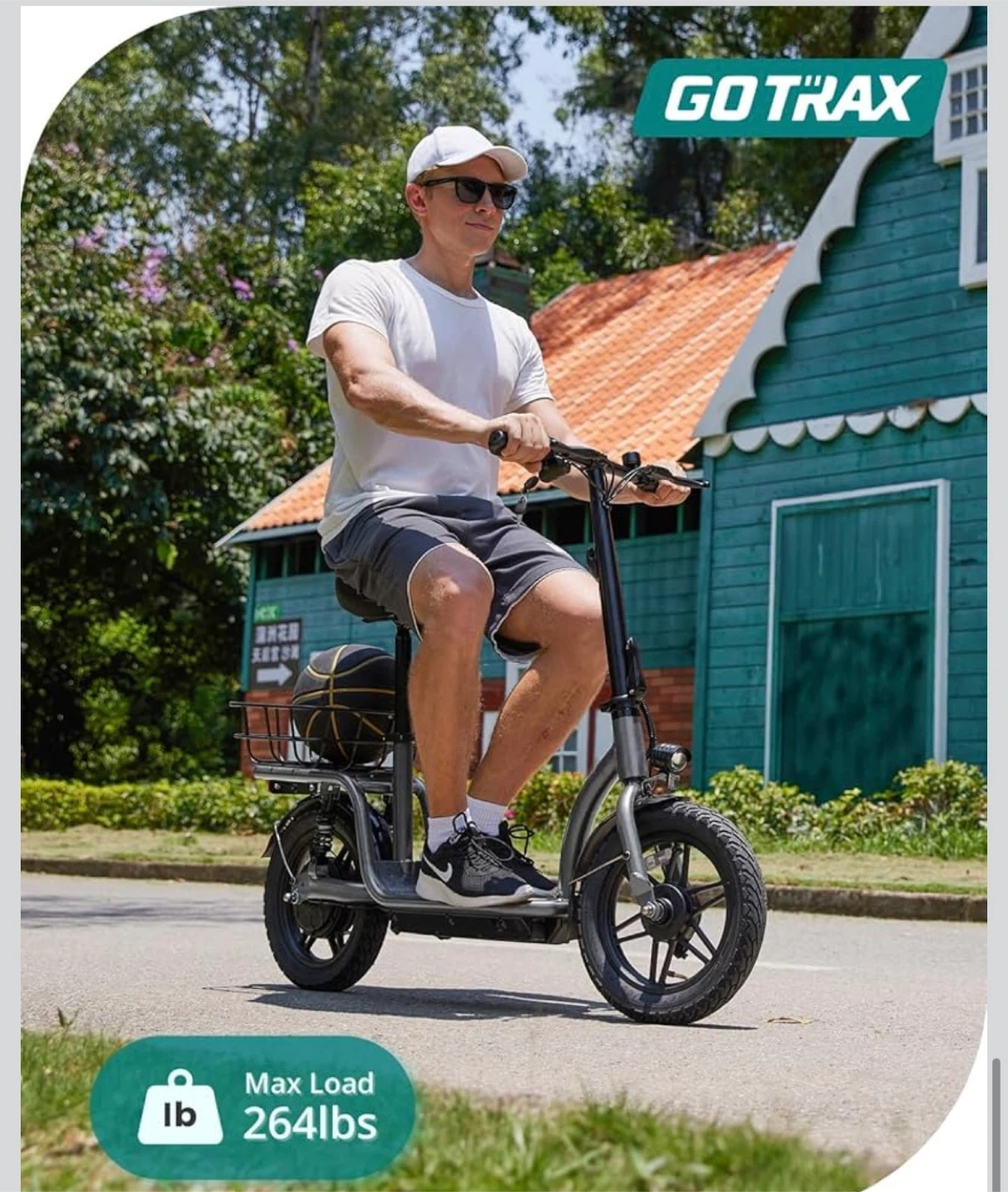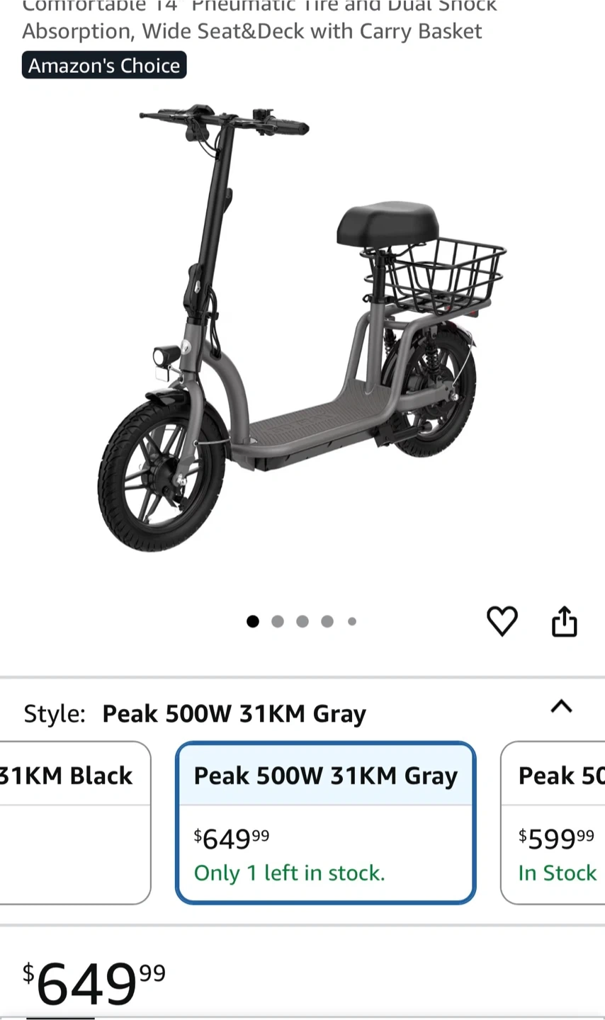 10Looking to sell my GOTRAX Peak 500W electric scooter in gray! It's perfect for getting around town. It has a wide seat and deck with a carry basket for your convenience. Max load is 264lbs.
