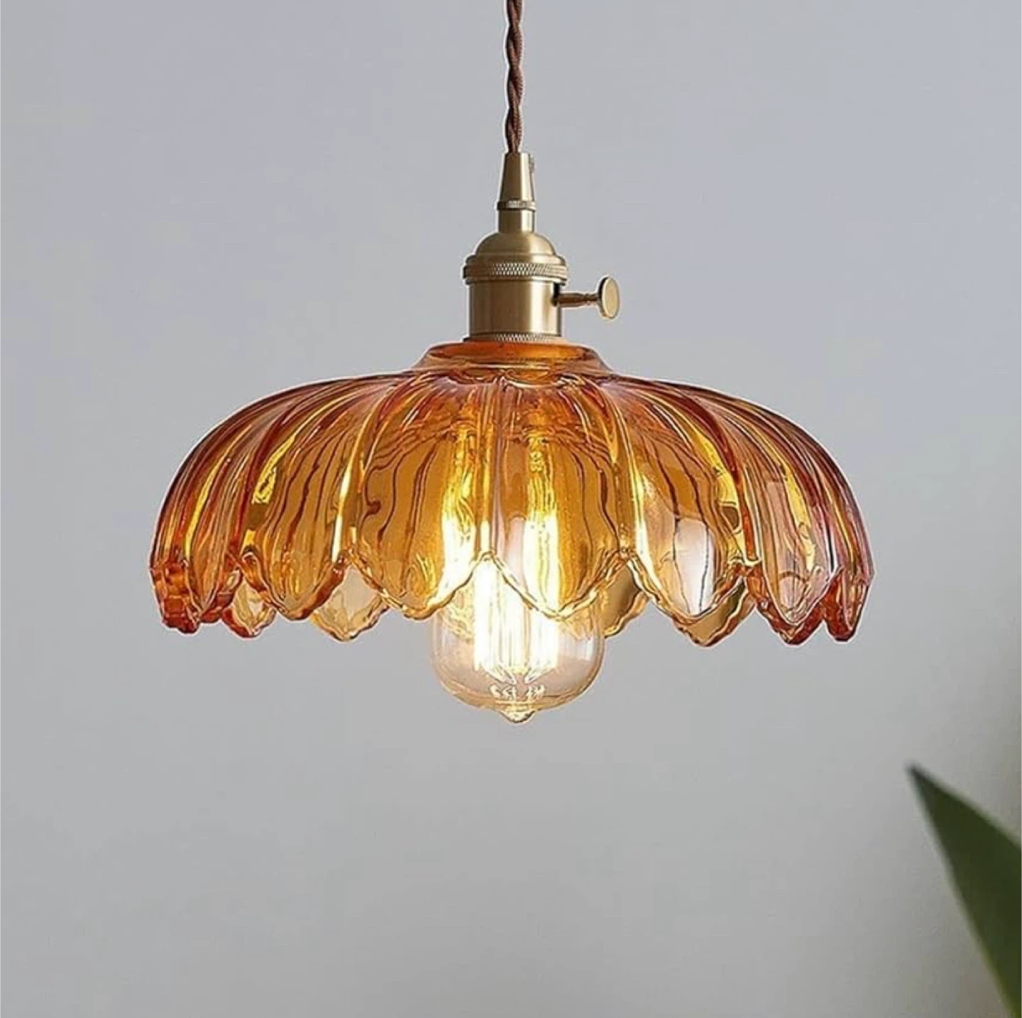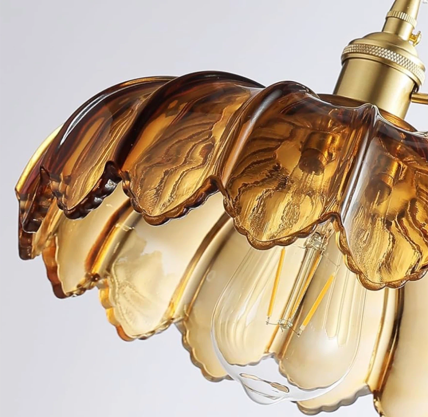 Amber glass pendant light with a unique fluted design.