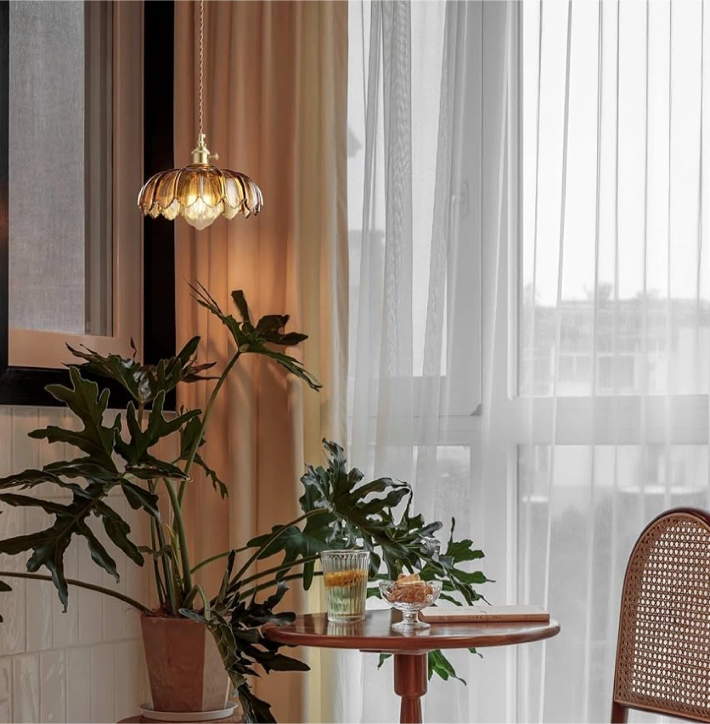 Amber Glass Pendant Light Fixture