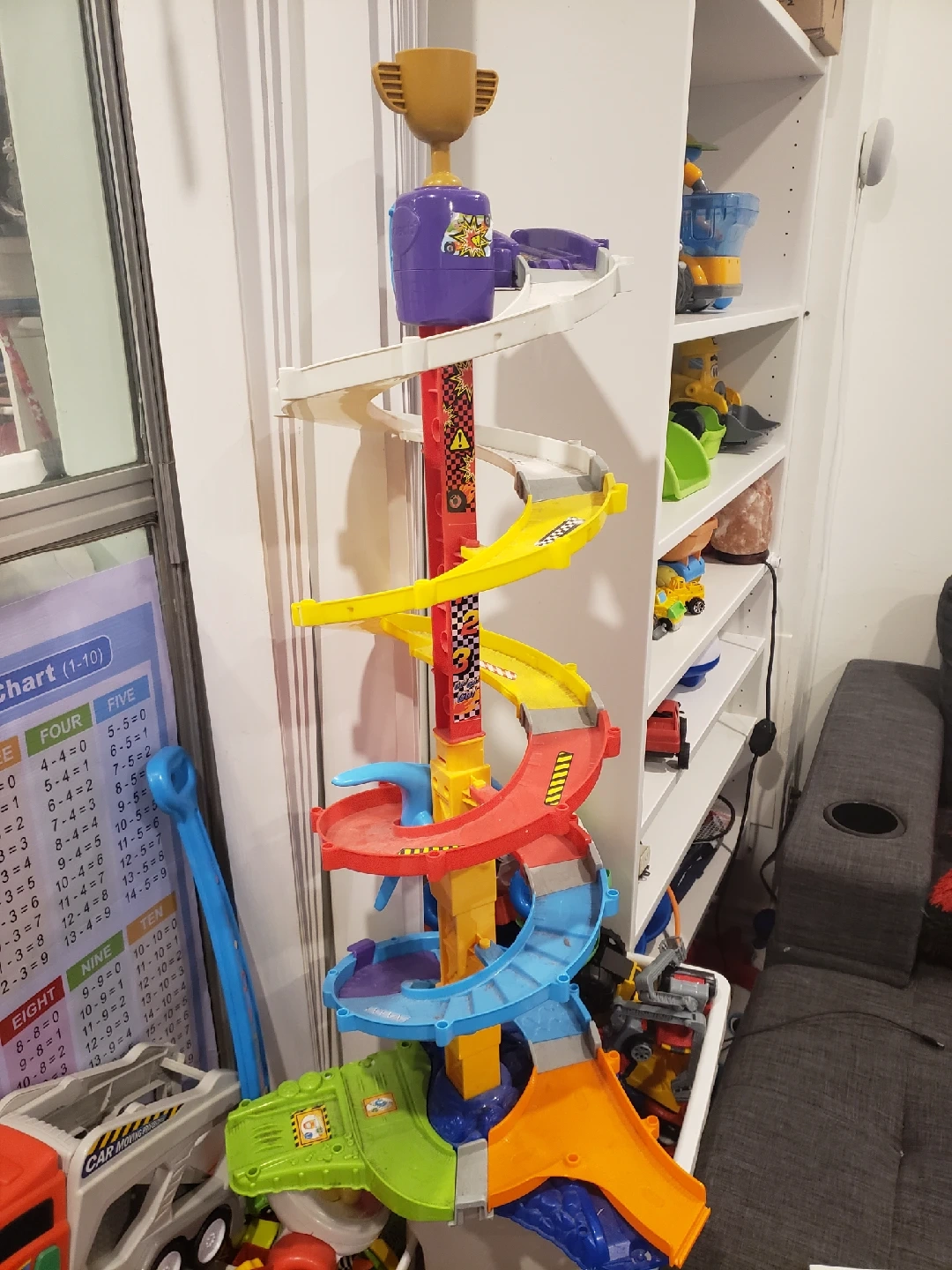 Selling a fun race track toy for kids! It features colourful tracks and a trophy at the top. Perfect for hours of entertainment for little ones Excellent condition Pickup at Jane and Finch..
