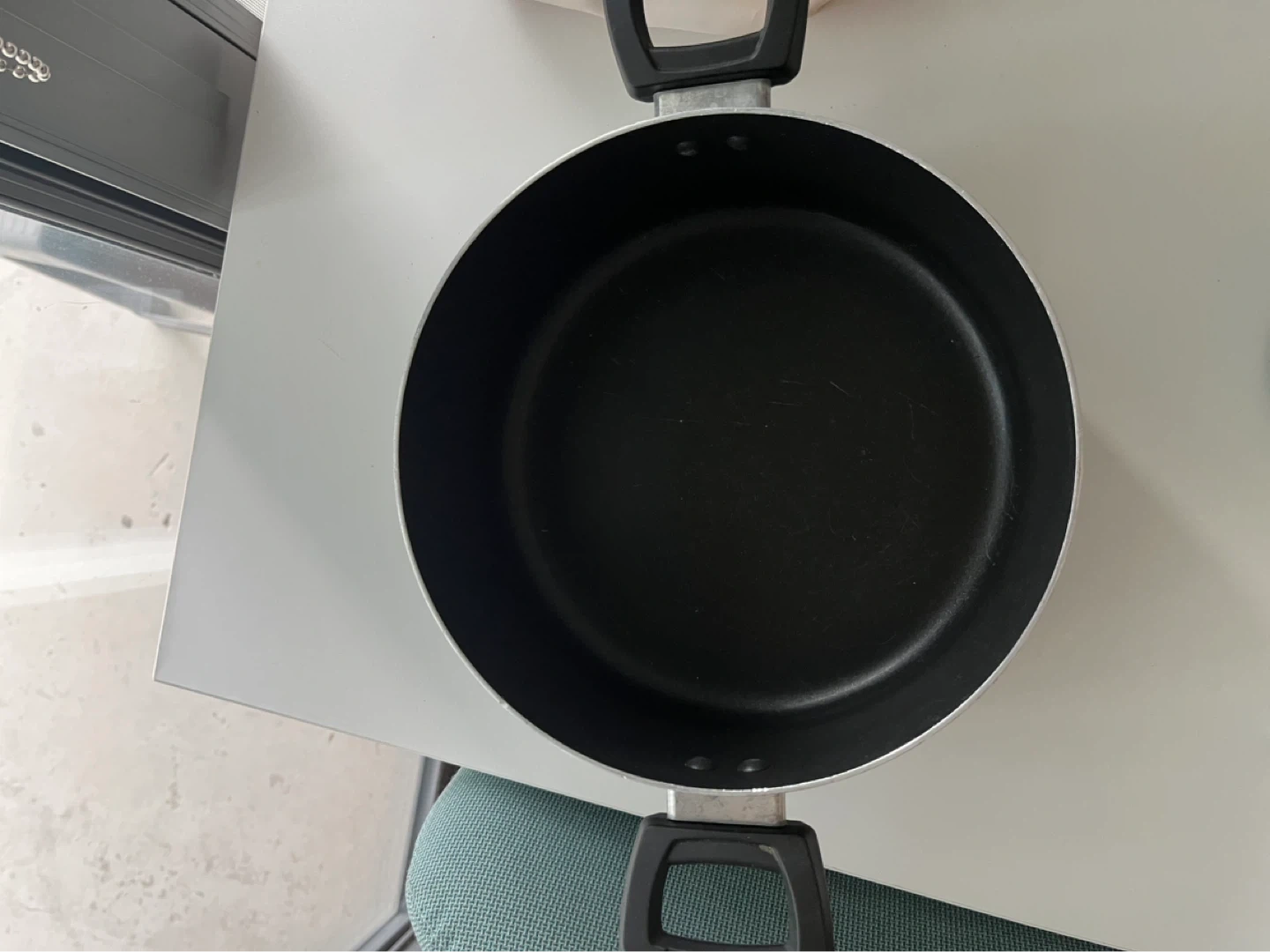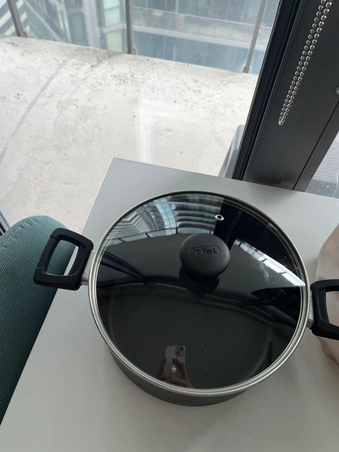 This T-fal stock pot features a non-stick interior and comes with a glass lid. Its durable construction makes it a handy addition to any kitchen. A sturdy pot for everyday cooking needs!