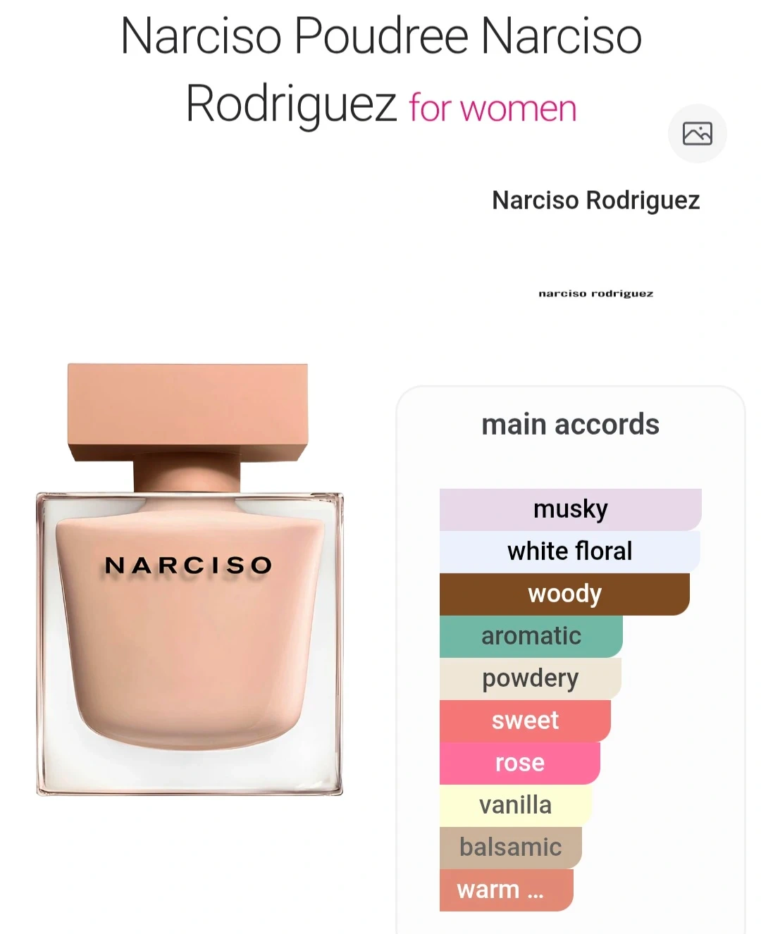 This is a 90mL bottle of Narciso Rodriguez Eau de Parfum Poudree. It's a blend of velvety jasmine, powdery musc, and sensual woods.