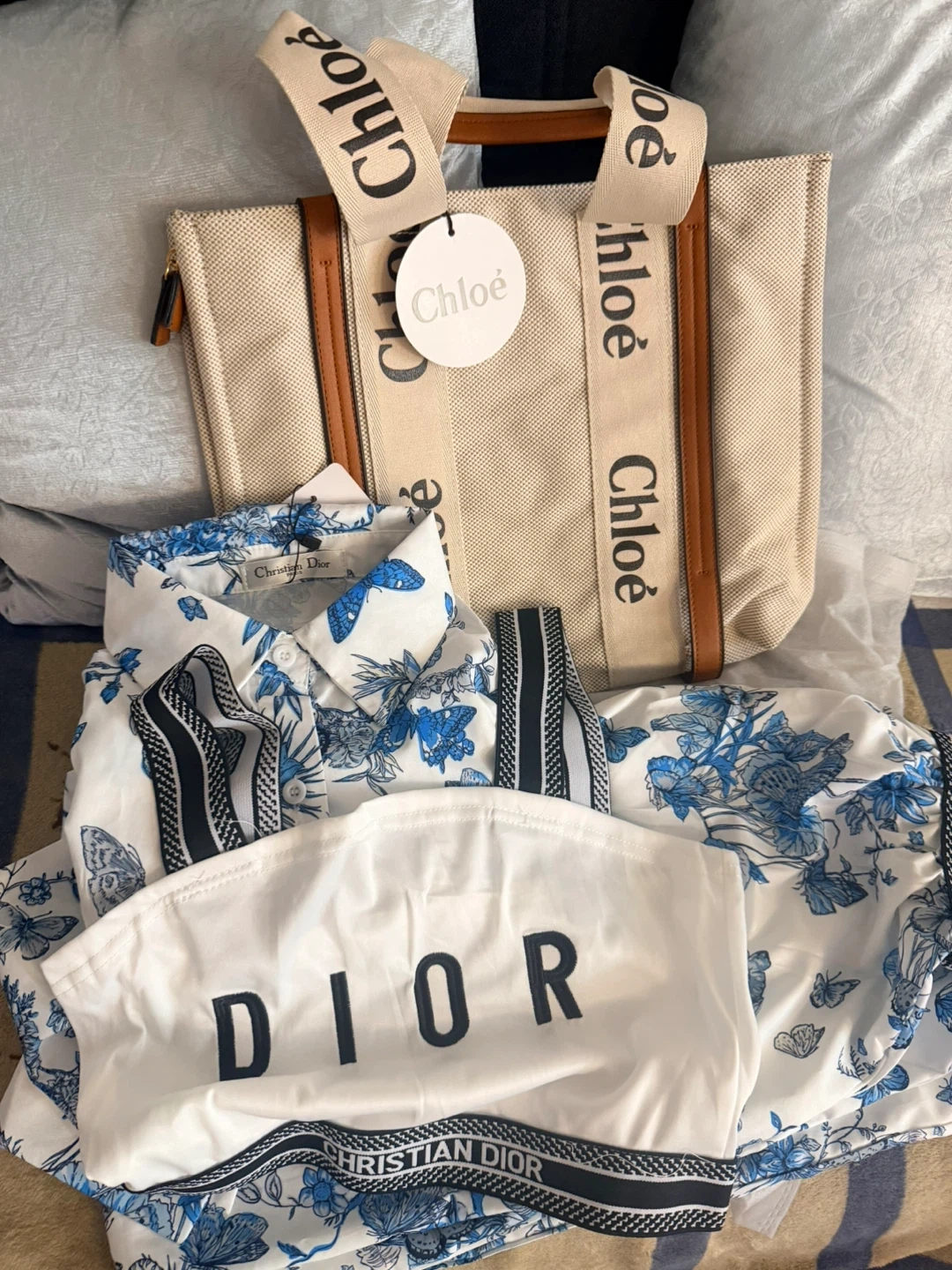Chloé Woody tote bag in canvas with leather trim. It's a medium size bag. This bag is perfect for everyday use!