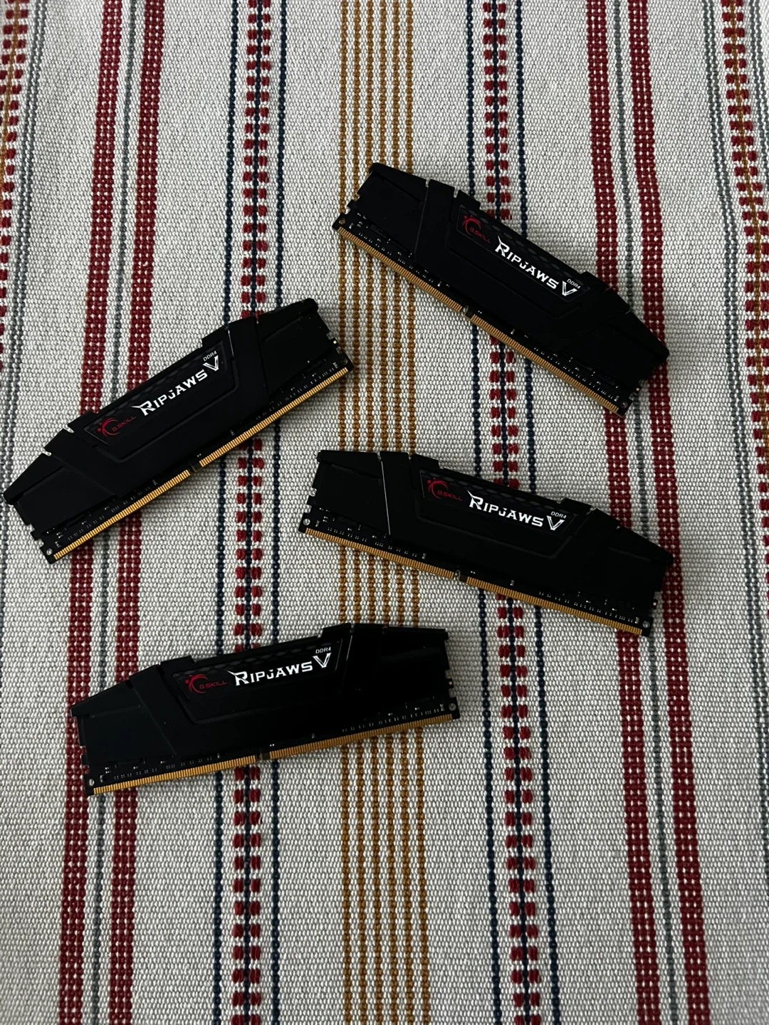 Set of four G.SKILL Ripjaws V DDR4 RAM modules. Each stick is 16GB , totalling 64GB.