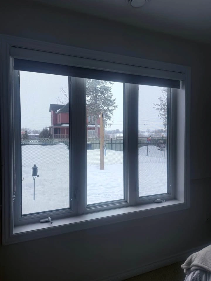3 full sets of grey roller blinds - 2 large (70 1/4” wide x 58” long) and 1 medium (46 1/2” x 58” long) with all hardware. Currently installed, easy to install. All 3 for $50. Pick up in Cookstown.