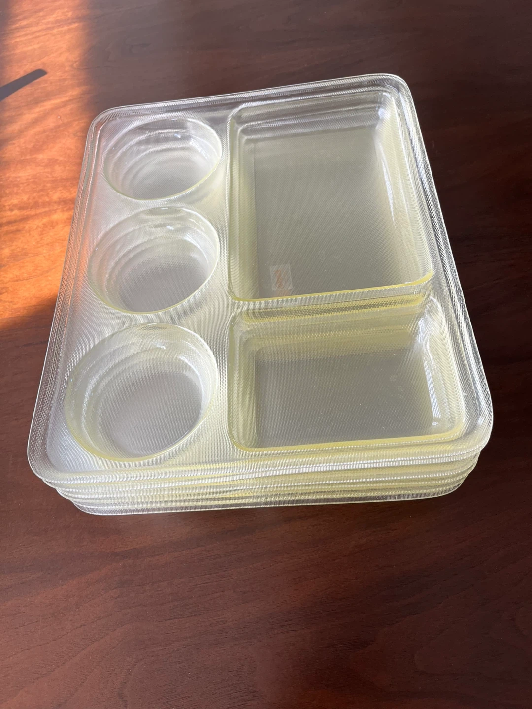 Set of 6 Clear Plastic Divided Serving Trays
