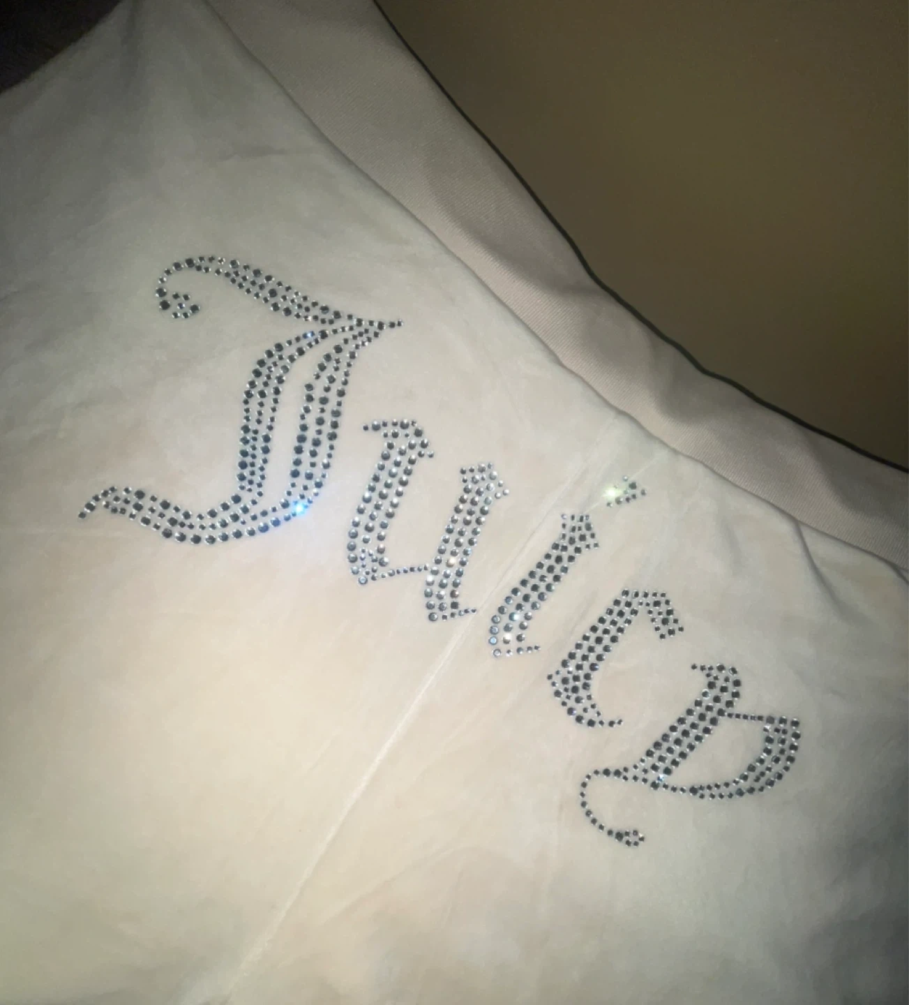 they're made of soft velour, and all the rhinestones are intact!