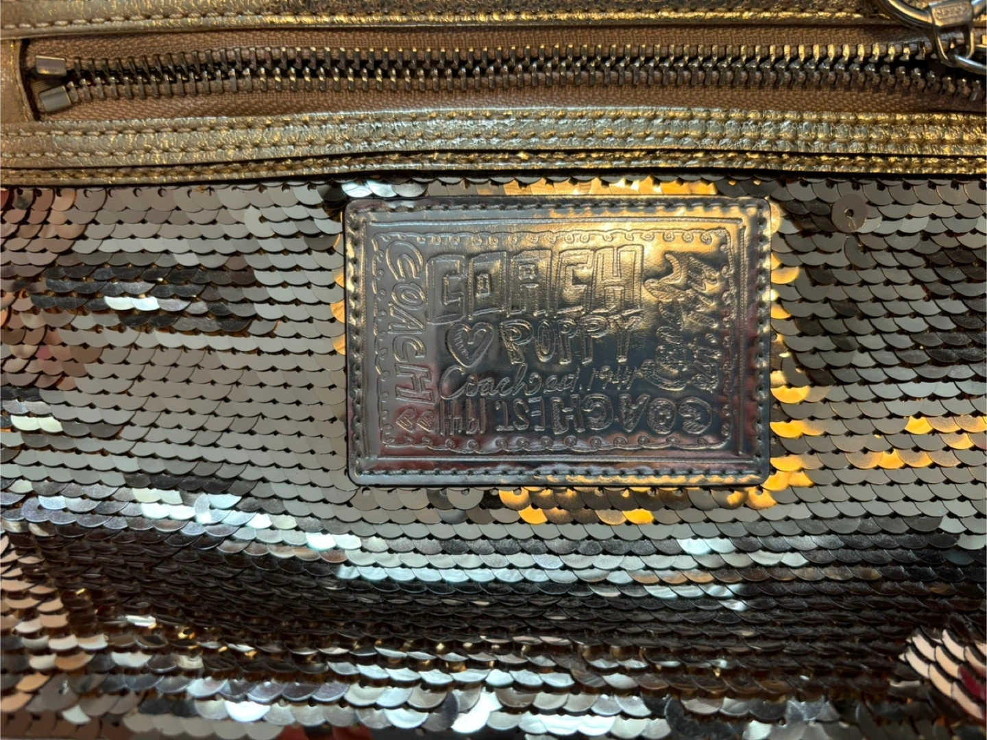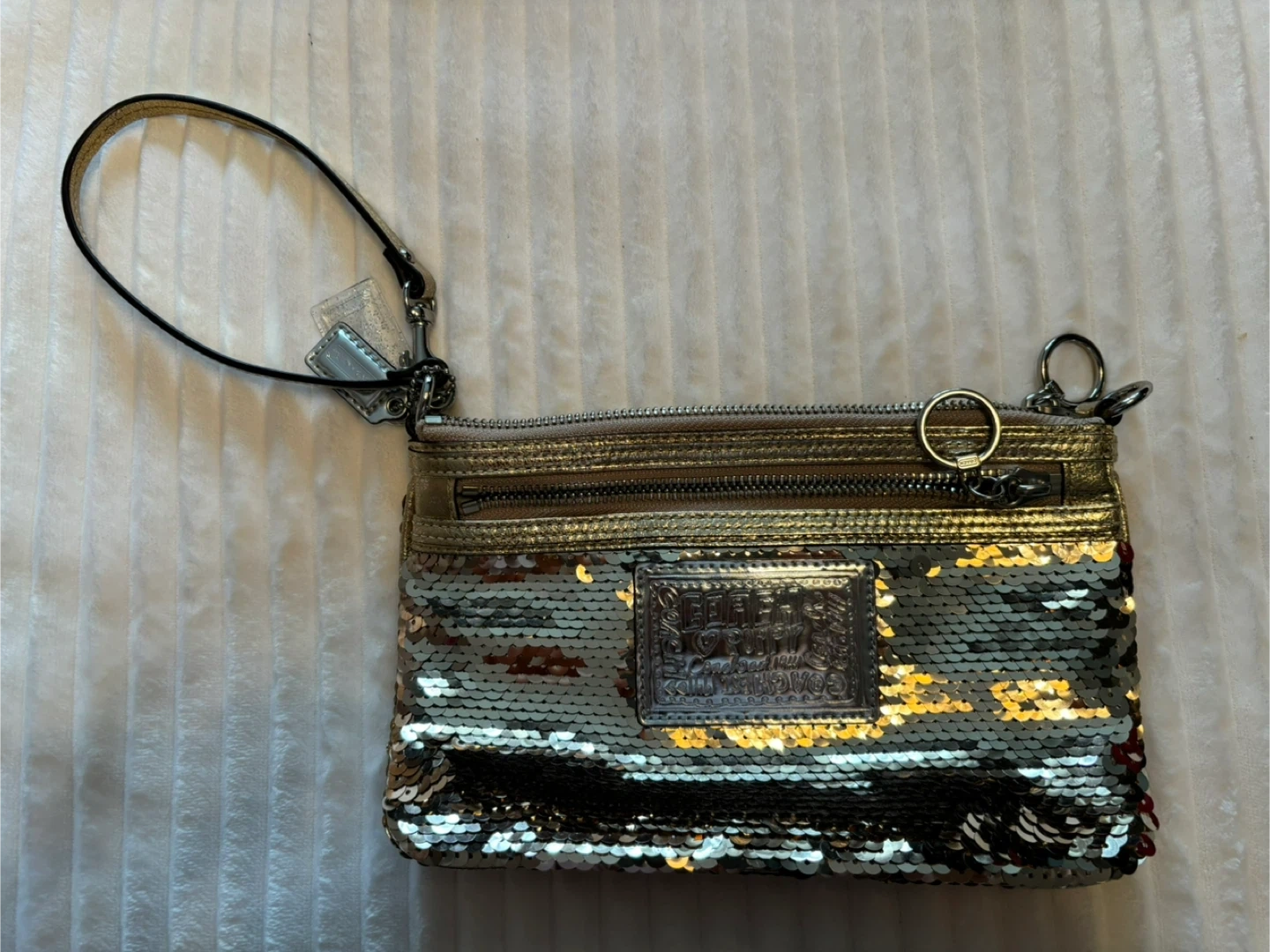 Coach Poppy Gold Sequin Wristlet Clutch