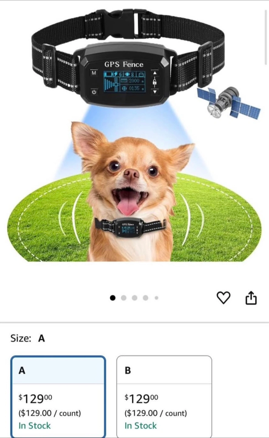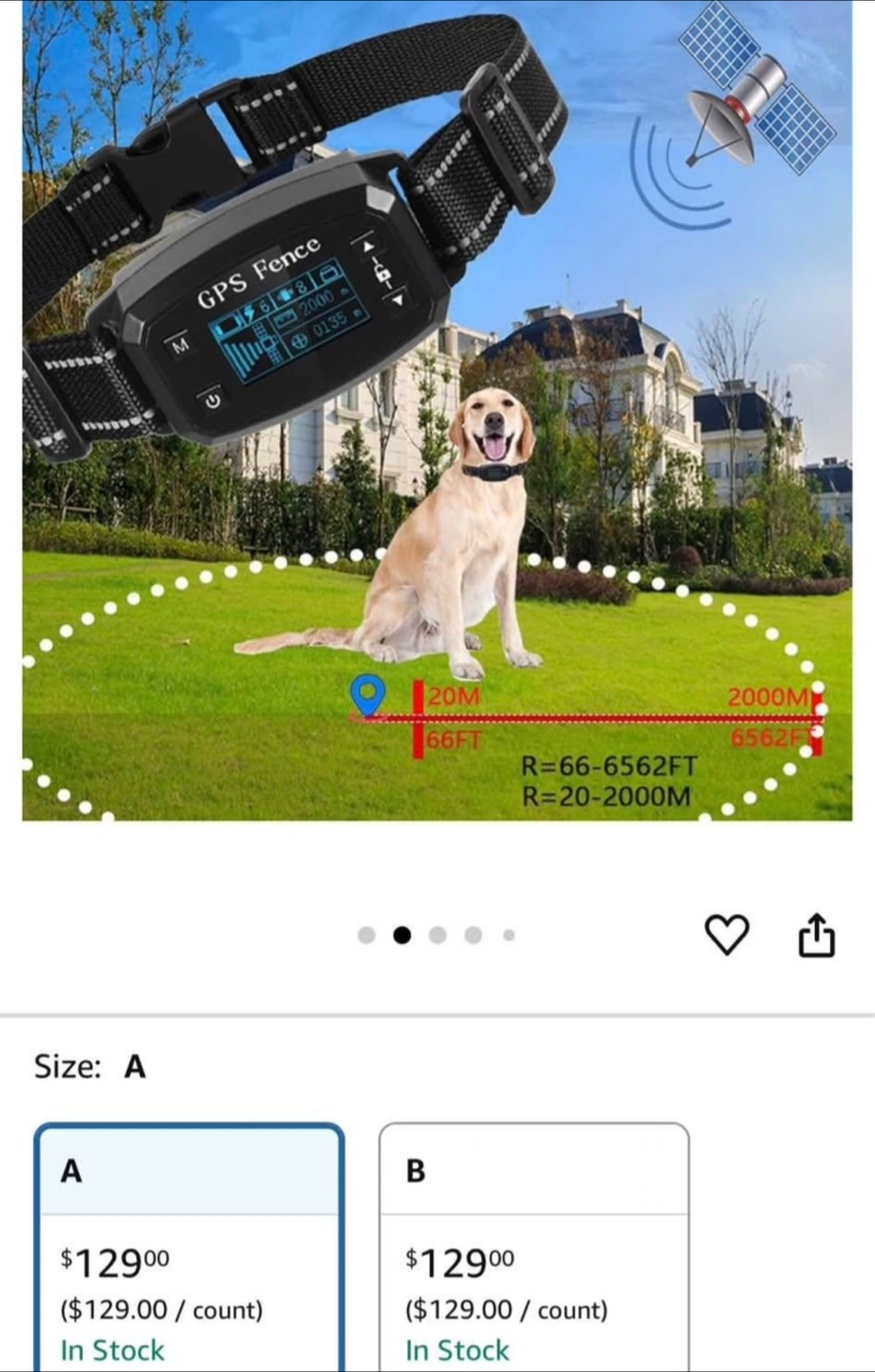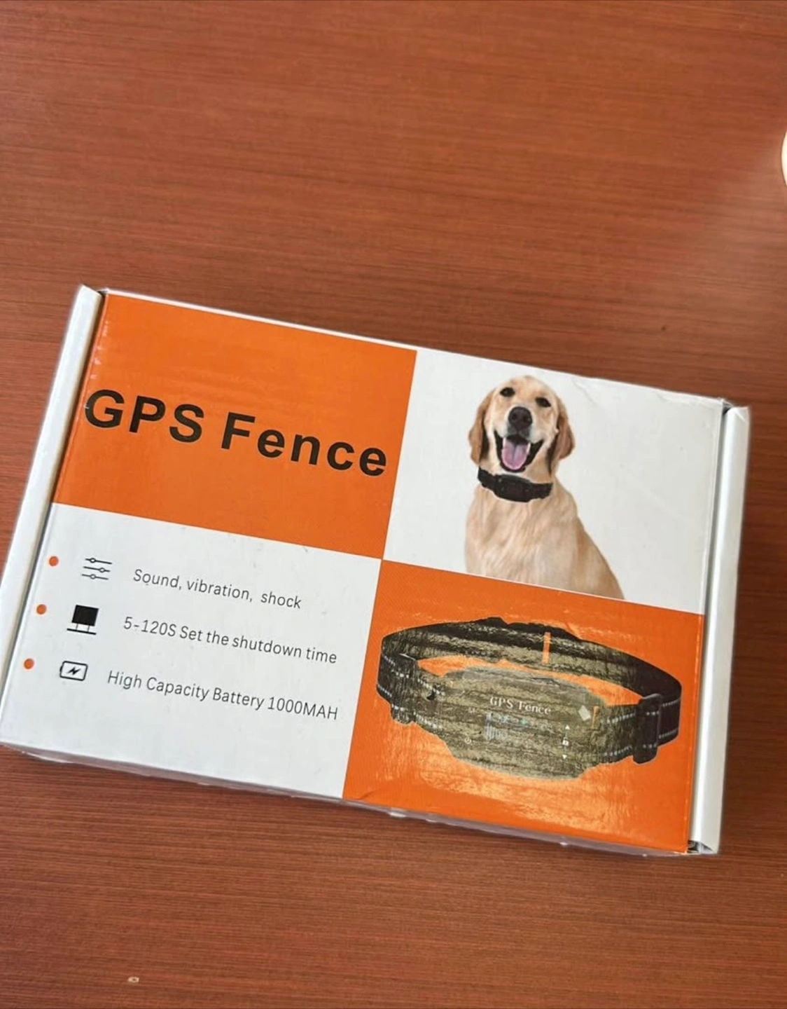 Selling a GPS fence dog collar, size A. It features sound, vibration, and shock options, and you can set the shutdown time between 5-120 seconds. It also has a high-capacity 1000mAh battery