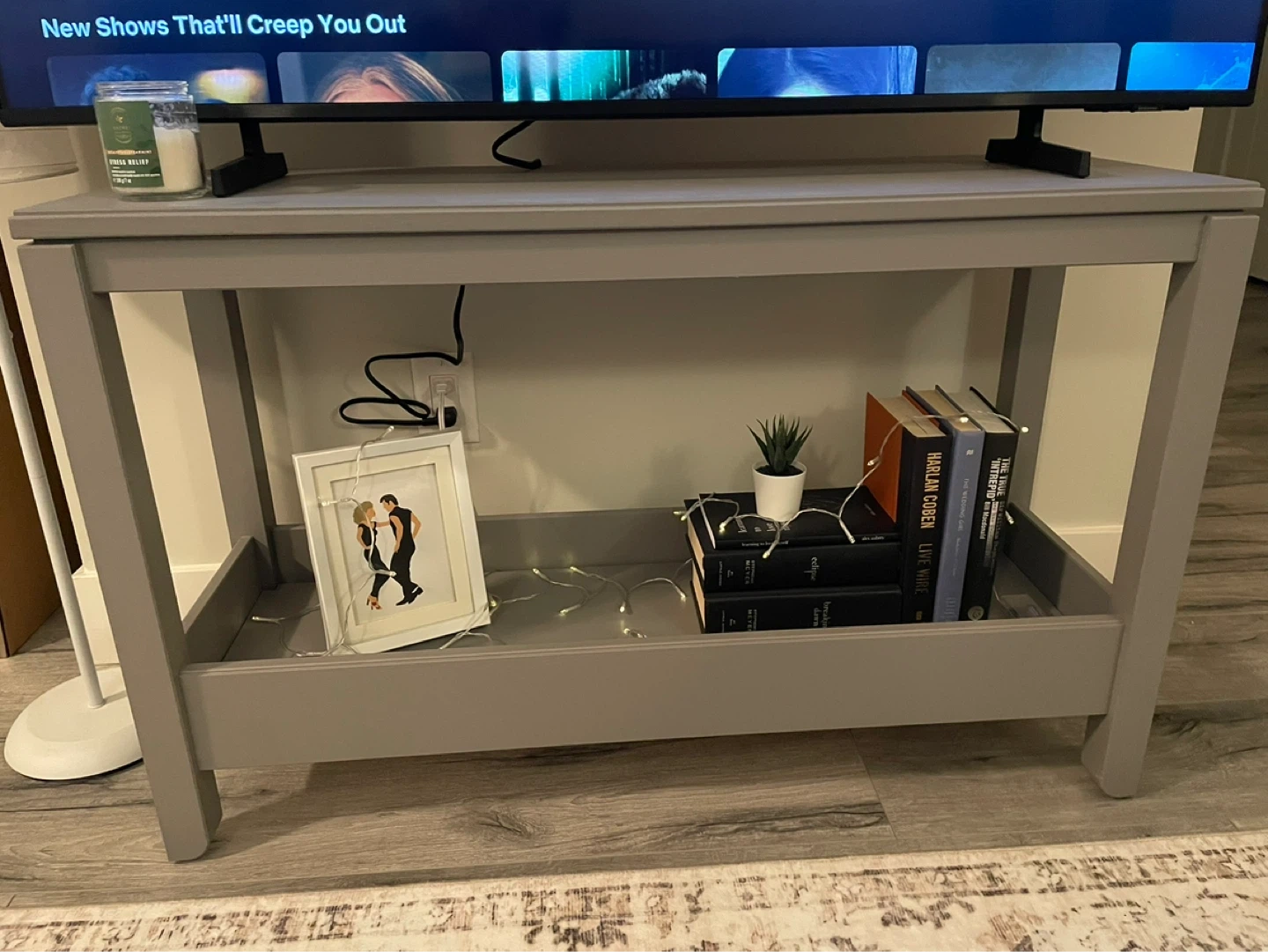 Buy & SellGrey Console TableGrey Console Table$42IKEA grey console table. It's a great spot for a TV or as an entryway table. Has a lower shelf for storage.ConditionLike newWHERE TO MEETCheck LocationView MapSELLERAlyssaAlbion181 review1 chats·1 favorites·19 viewsSEND CHAT TO SELLERHi Alyssa! I’m interested in your listing.Hi Alyssa! I’m interested in your listing.Get the Karrot app to chatSign In to chat