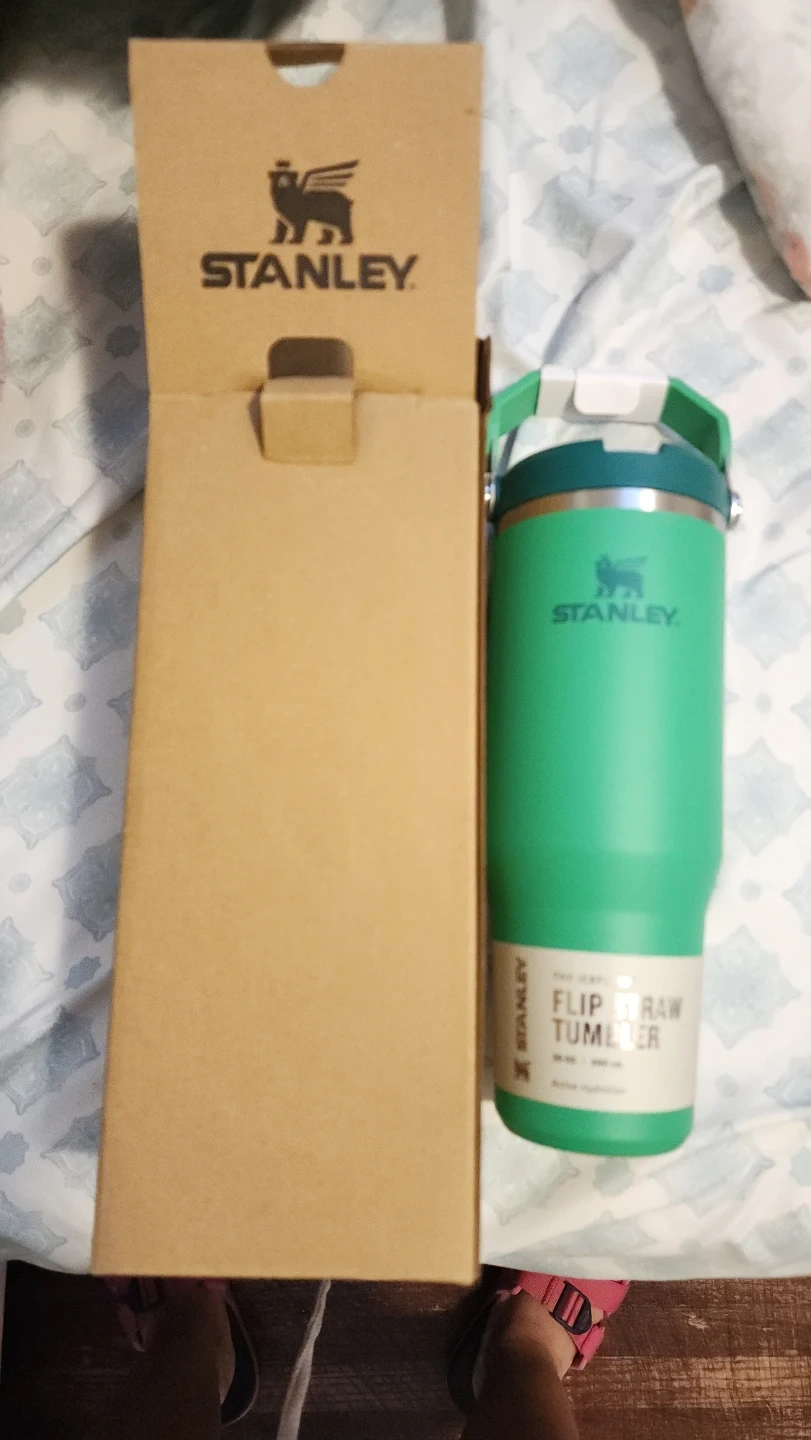 This is a green Stanley Flip Straw Tumbler. It's 40oz and comes with its original box. Keeps drinks cold for 24 hours and hot for 12 hours.