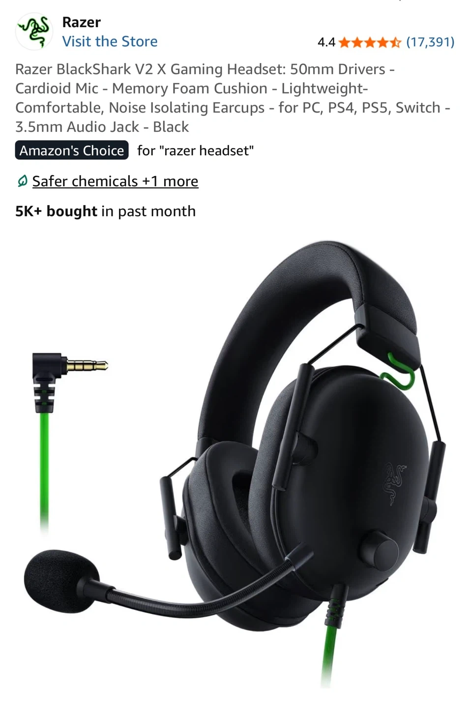 Selling a Razer BlackShark V2 X gaming headset in white. This headset features 50mm drivers for high-end audio performance. It also has memory foam cushions and noise-isolating earcups for comfort. Great for PC, PS4, PS5, and Switch!