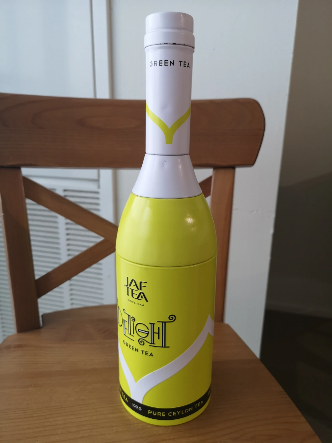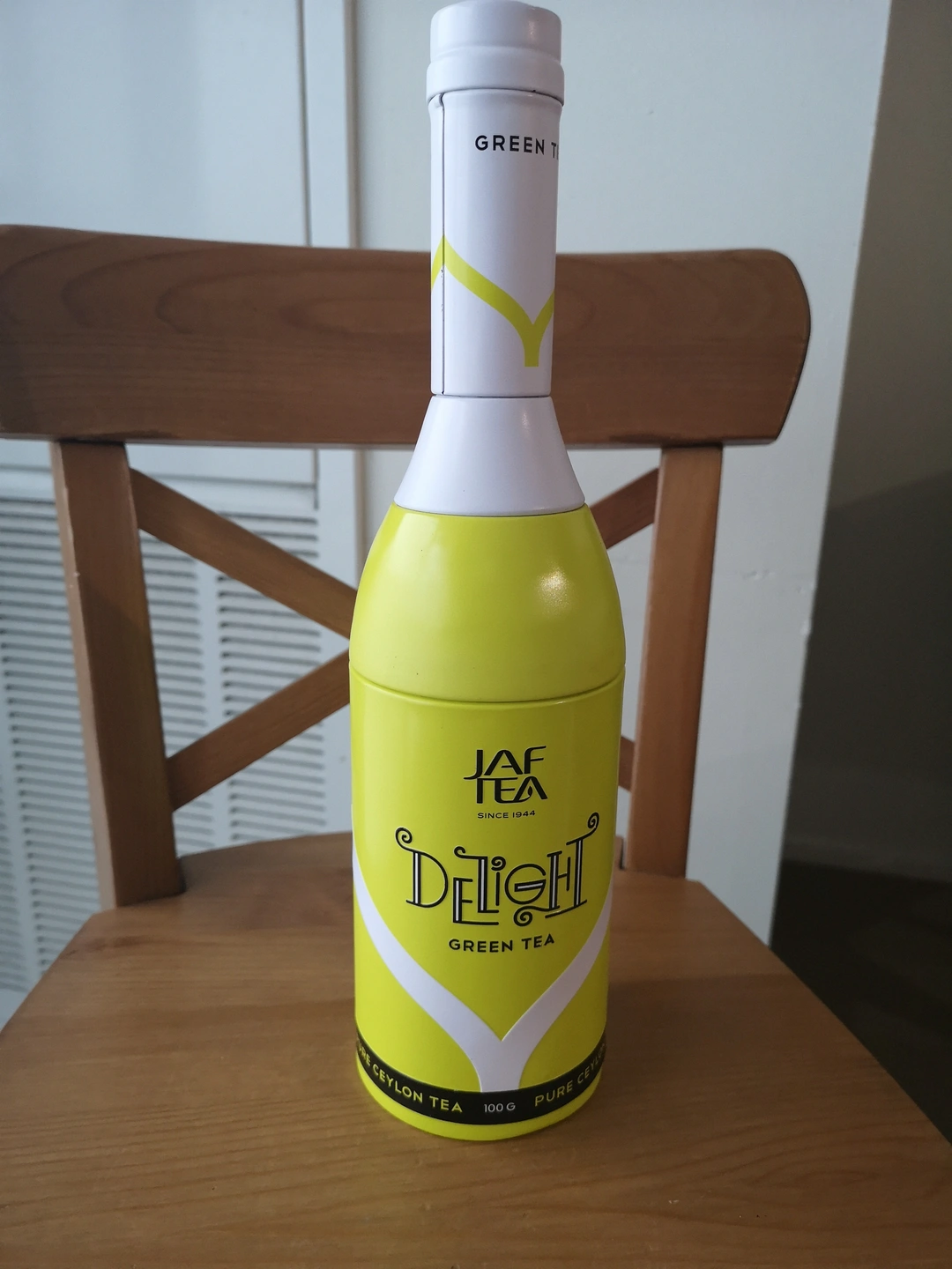 It's a unique and stylish way to store your tea. The container is in good condition and ready for a new home!