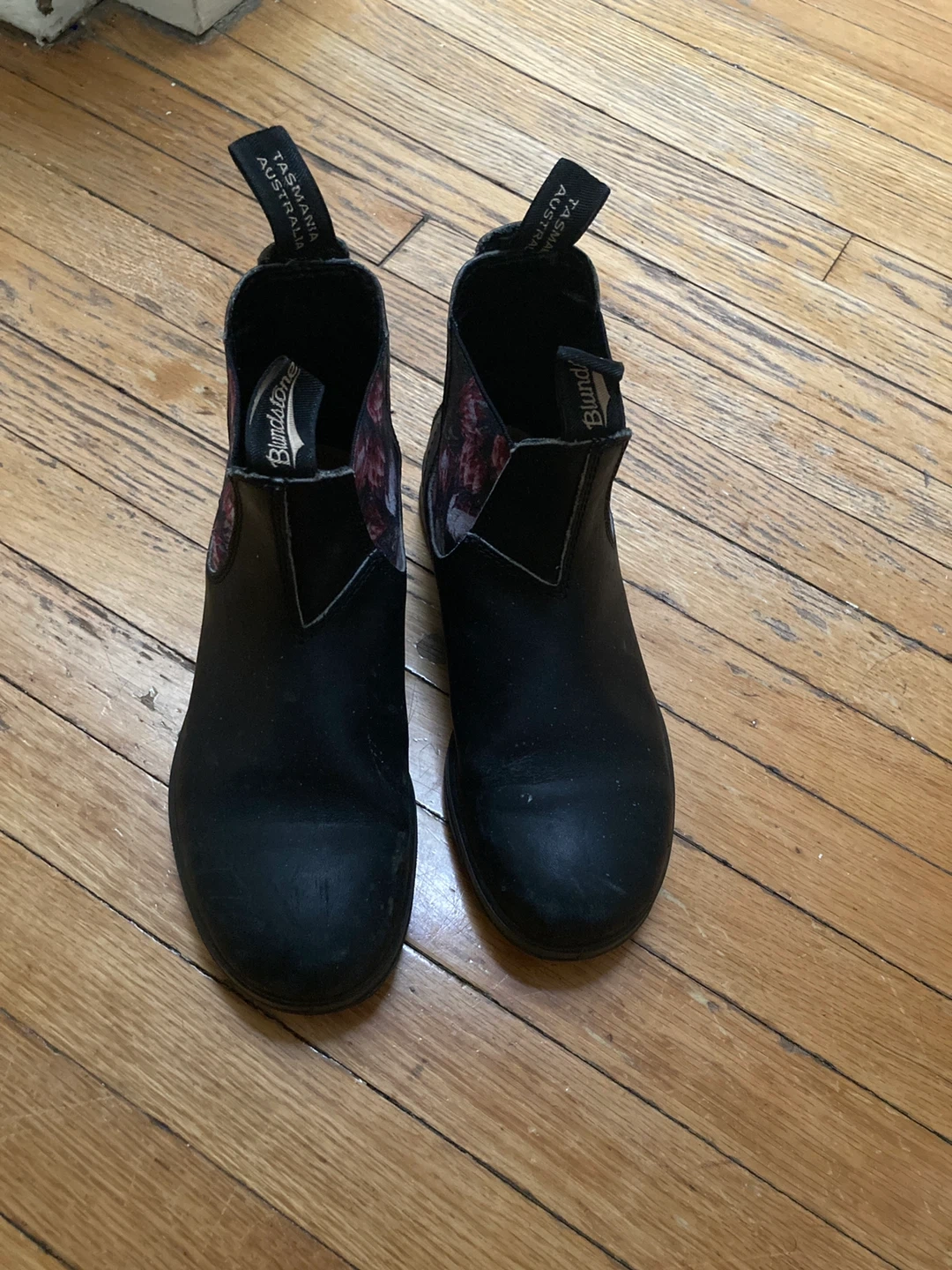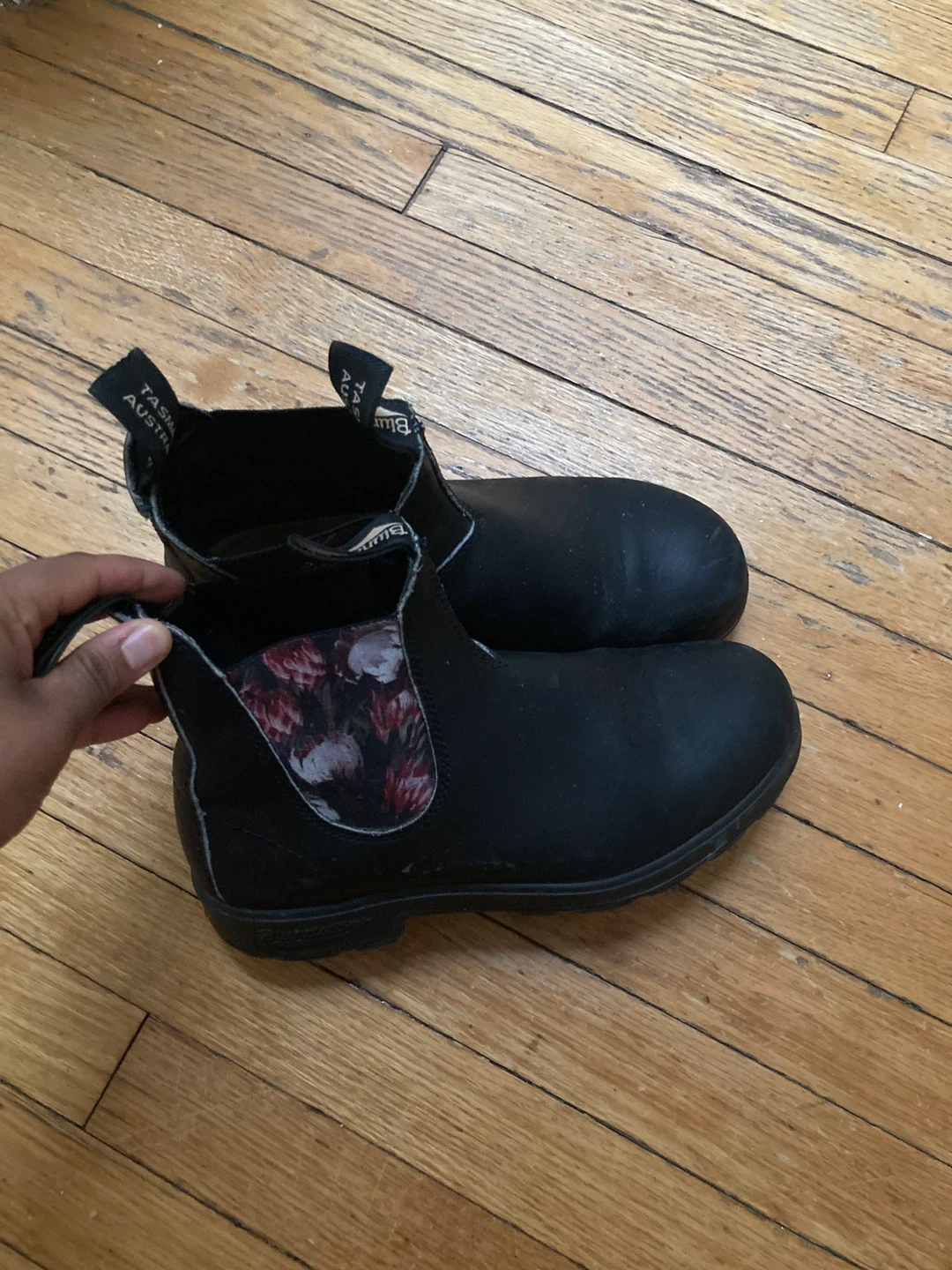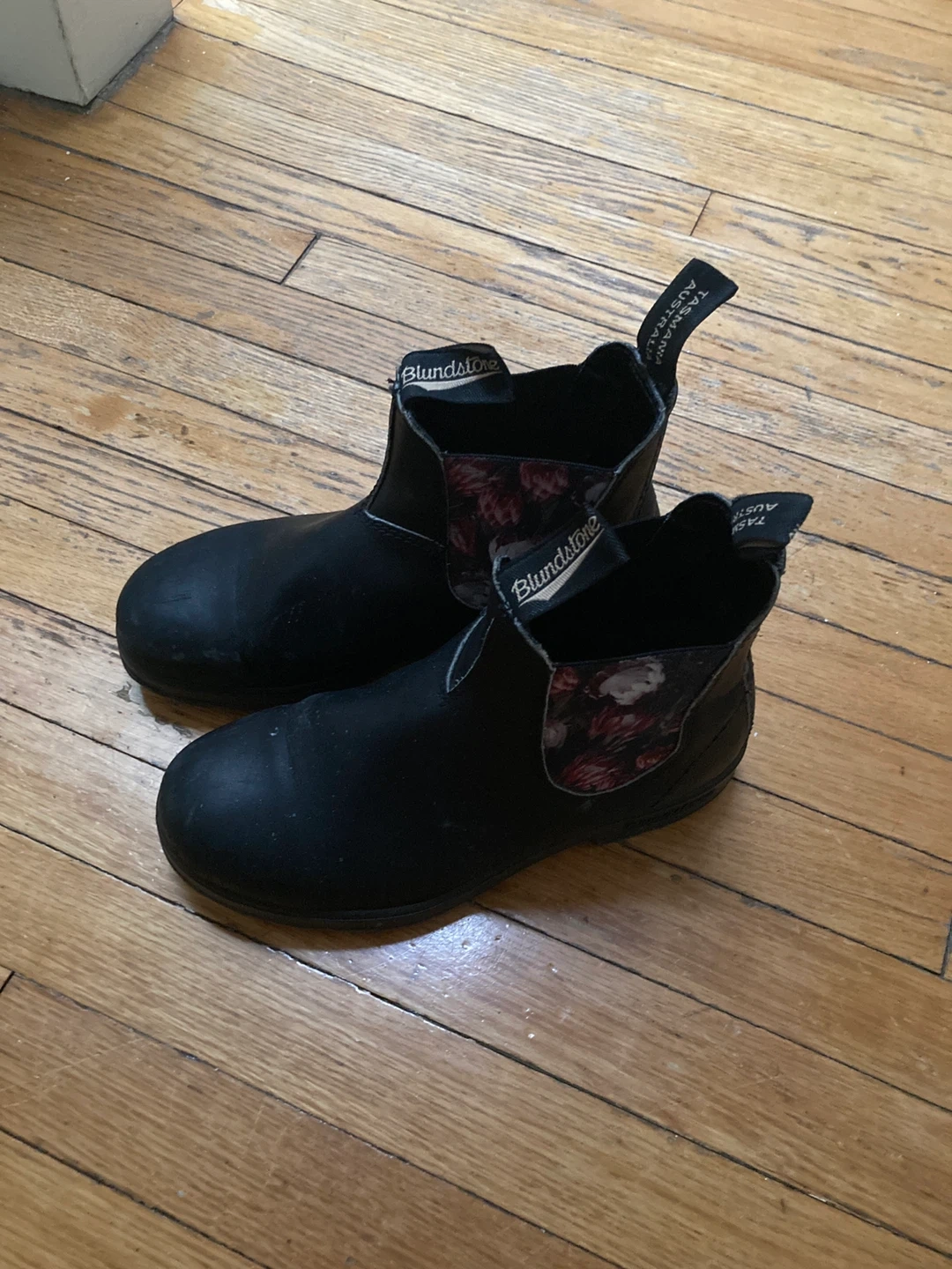 These are Blundstone Chelsea boots in black with a floral lining. They're pull-on style for easy wear. Great for everyday use! Size 4.5 AUS which is 7.5 US. Looking to trade for 4 AUS which is 7 US. Women’s.