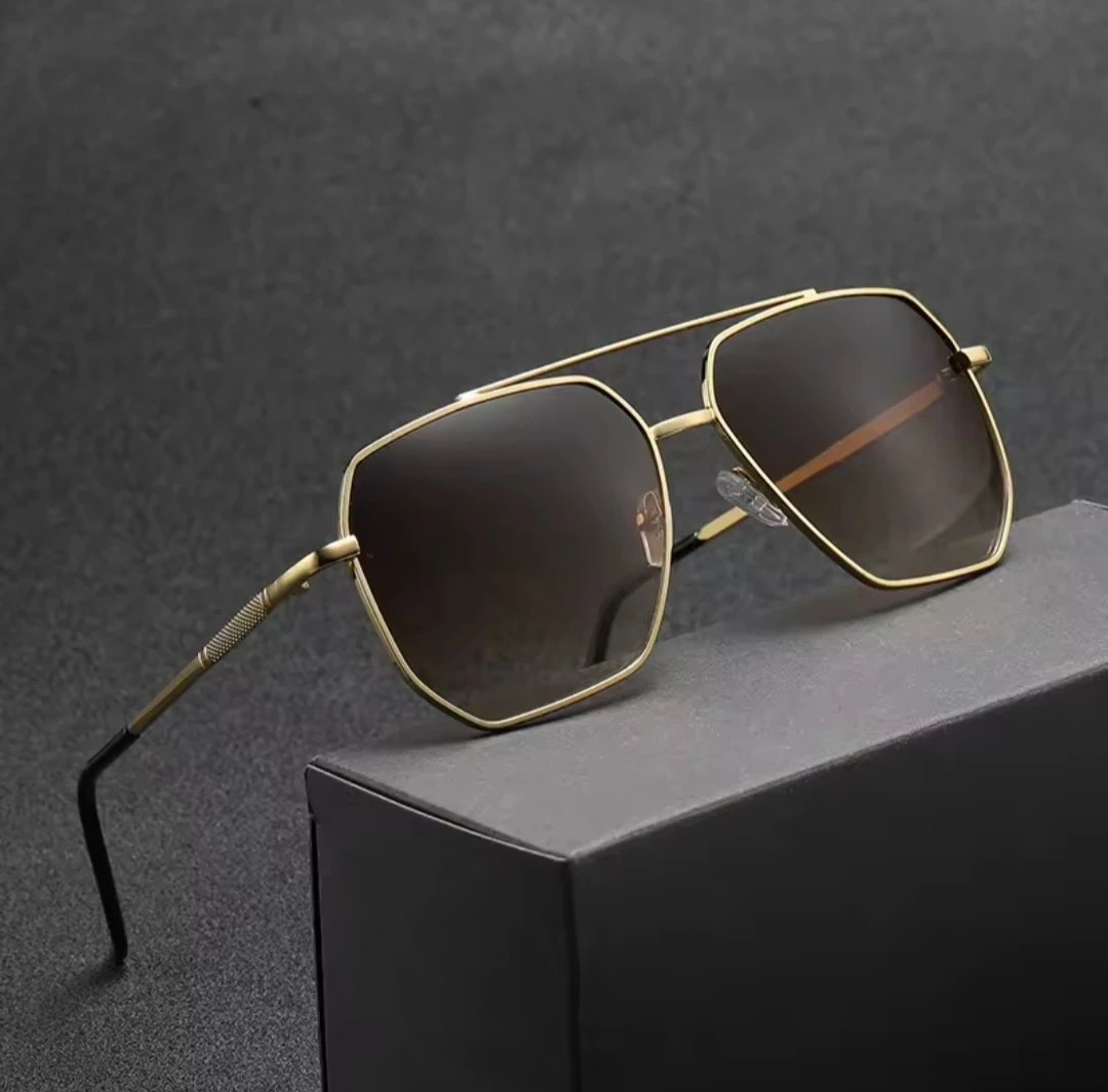 Stylish aviator sunglasses with gold-toned metal frames and brown gradient lenses. These shades offer a classic look for everyday wear. They're designed for comfort and protection from the sun.