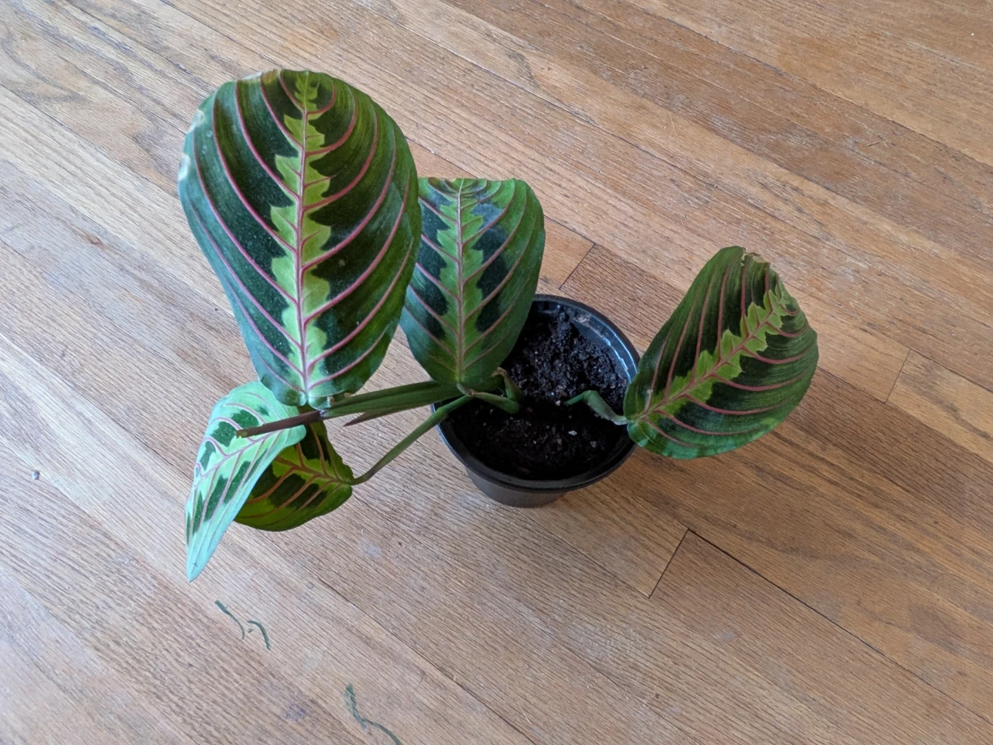 Bright red veins cutting through the deep green leaves. This plant's leaves fold up at night, resembling praying hands. Open to trade (looking for more plants with colourful leaves, no pothos and aloe please).