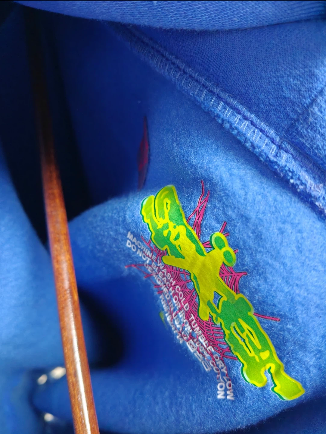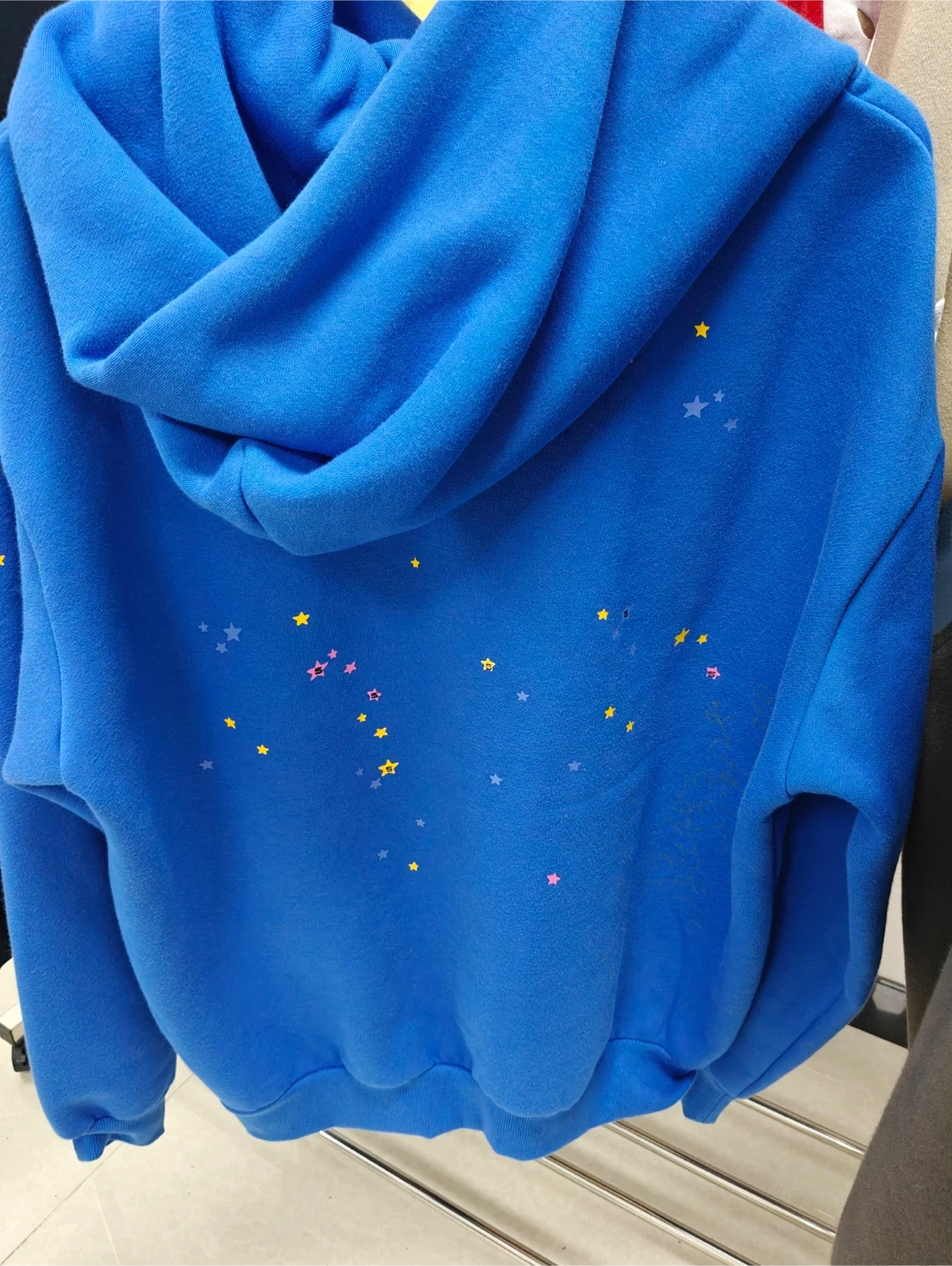 Selling a Brand new blue Sp5der hoodie. It has a unique design with a spiderweb and star details on the front and back