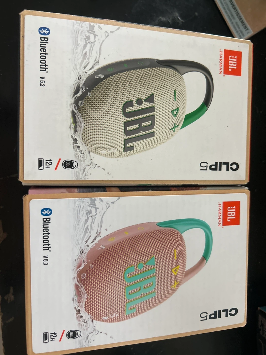 Brand new JBL CLIP 5 portable Bluetooth speaker. It's waterproof and dustproof with 12 hours of playtime. Includes Bluetooth v5.3 connectivity.