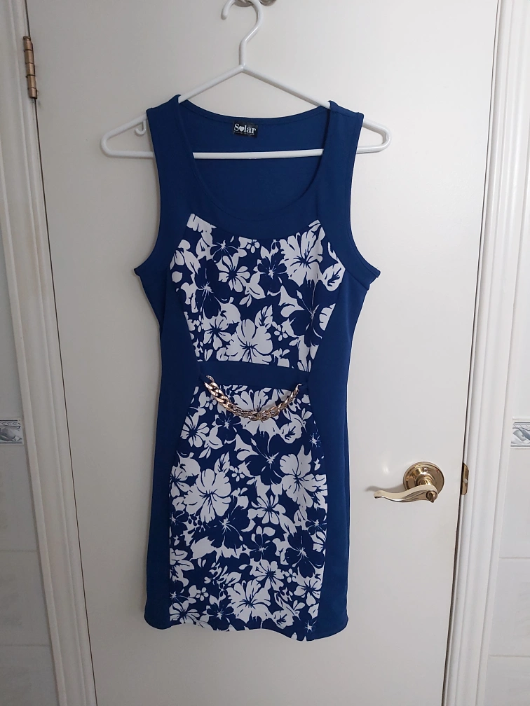 Blue floral stretchy dress, size medium