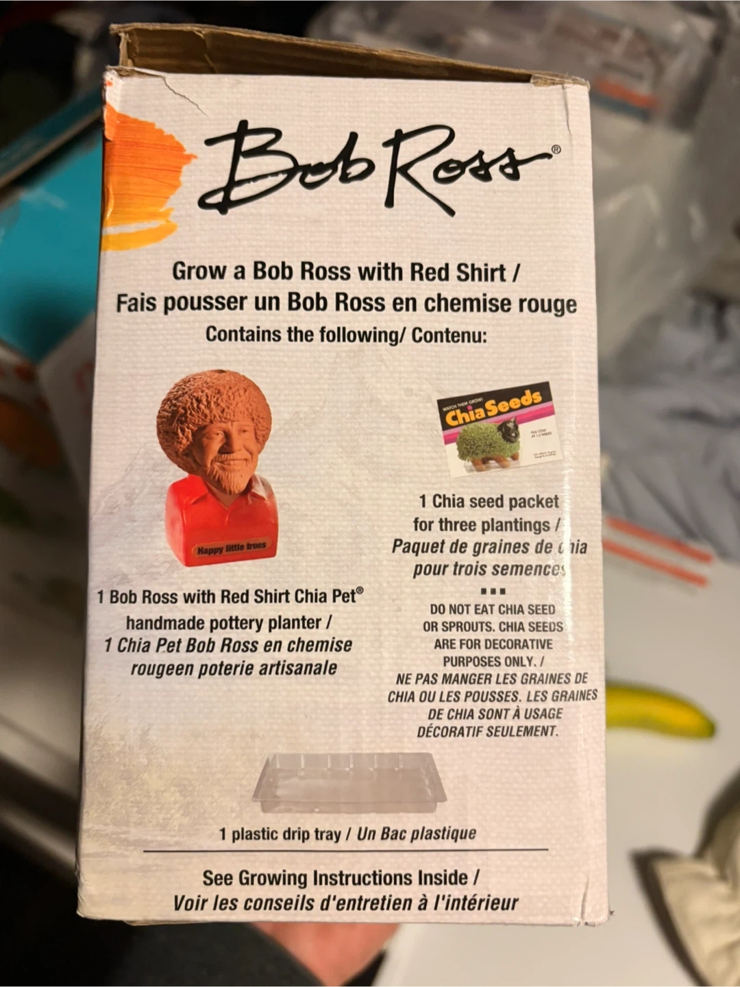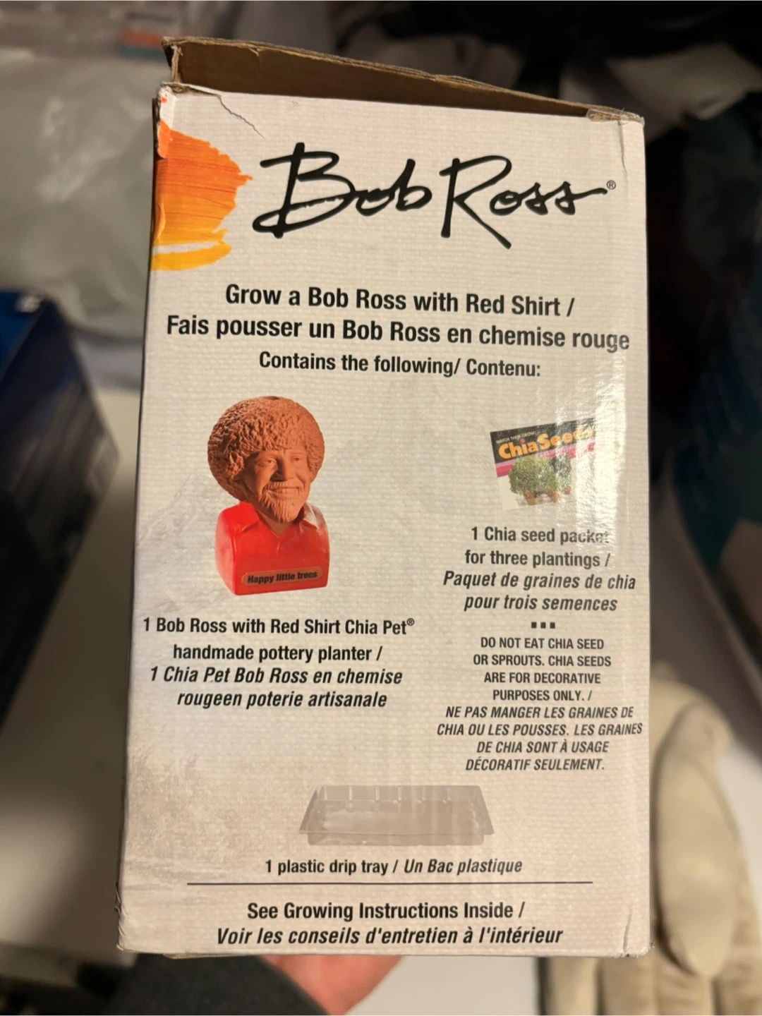 Grow your own Bob Ross with this fun Chia Pet kit! It includes one Bob Ross with Red Shirt Chia Pet planter, three chia seed packets, and a plastic drip tray. The kit contains everything you need for three plantings. It's a great way to bring some artistic fun to your home!