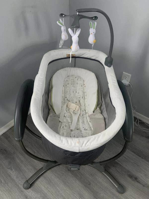 65Rocks your baby to sleep for you and plays music Barely used Amazing condition Comes in box $380 in store + Tax and out of stock at Babies R us