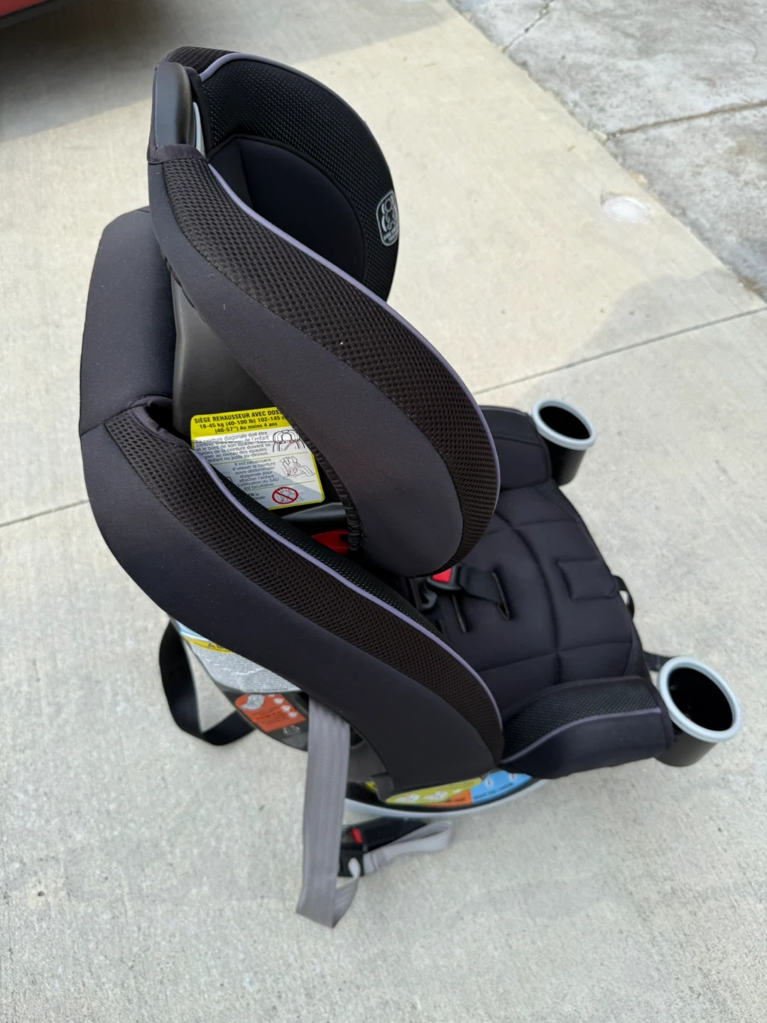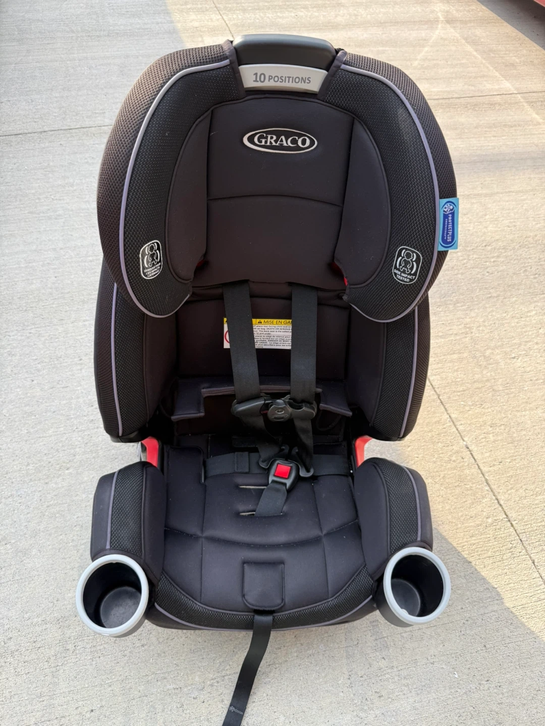 Selling a Graco 4Ever car seat in black! It's in great condition and ready for a new family. This car seat features 10 positions and includes two cup holders for convenience. It's a reliable and safe option for your little one!