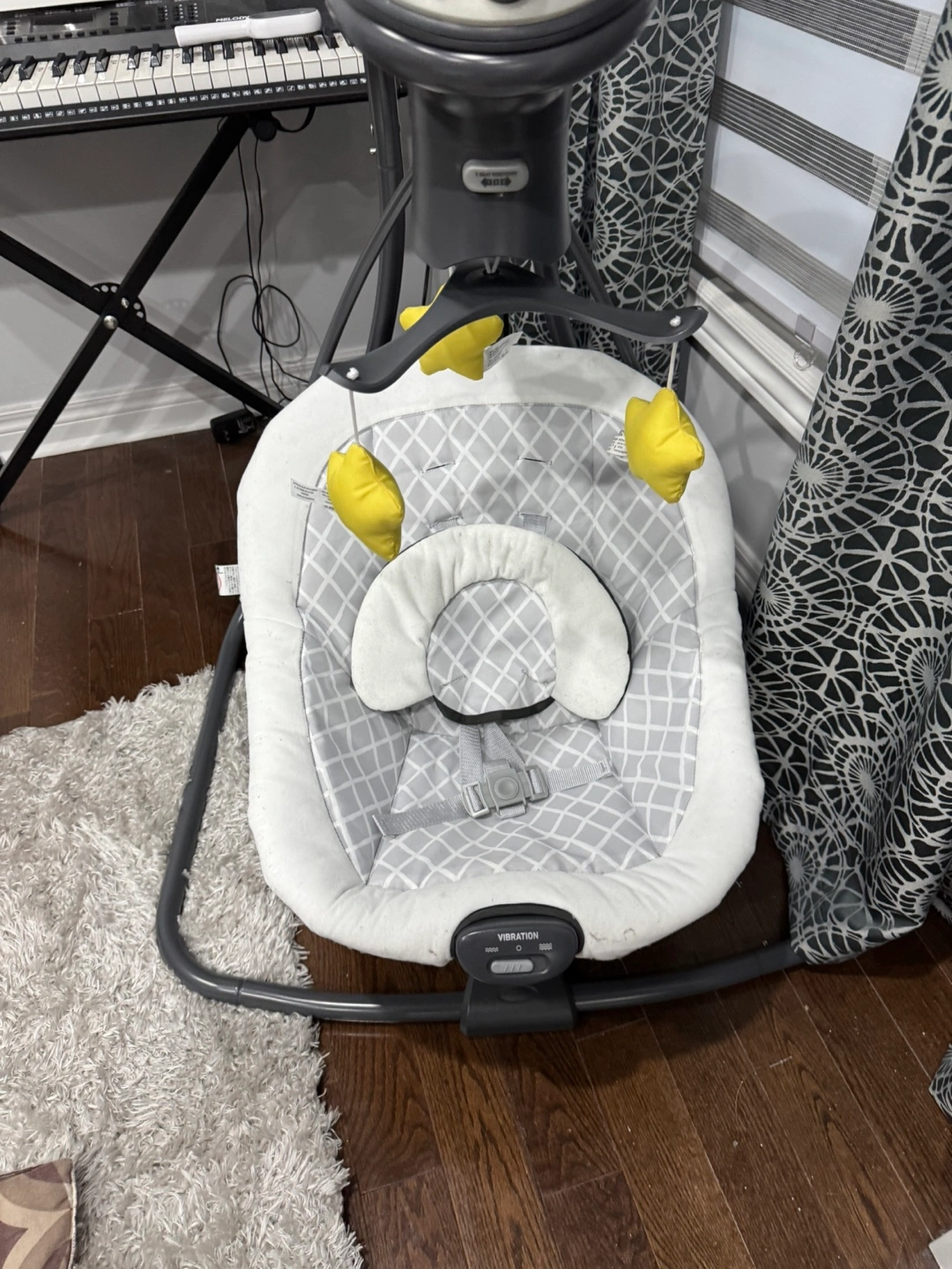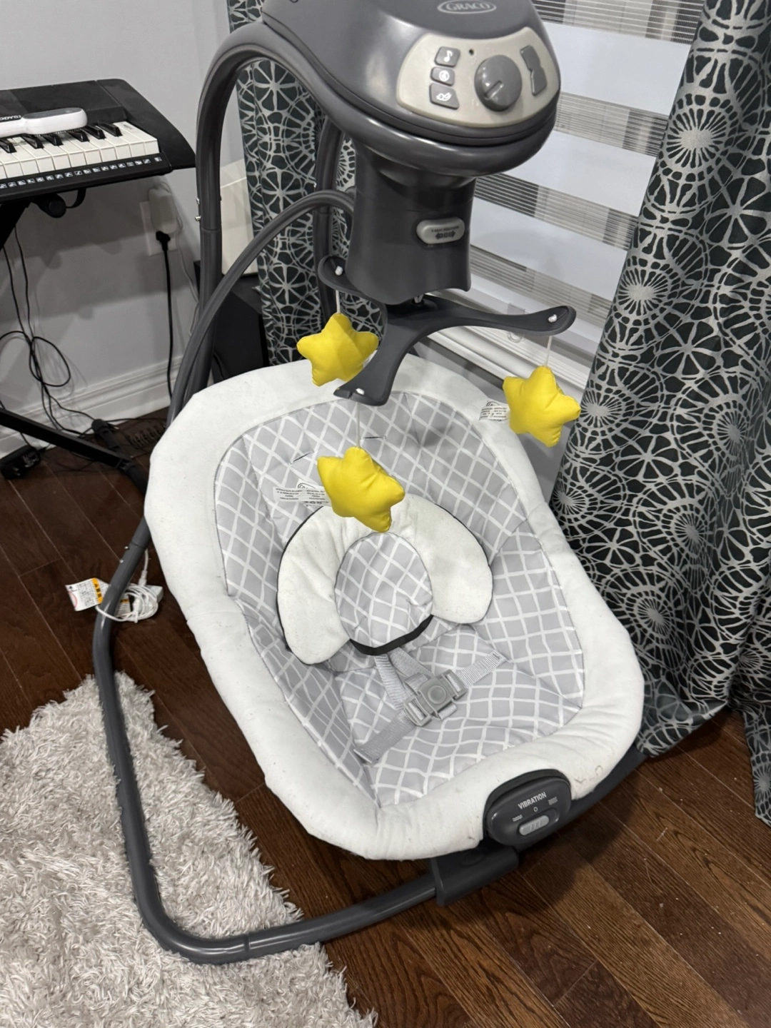 10Selling a gently used Graco baby swing! It's in great condition and ready for a new little one. Features a comfortable seat and calming vibration settings to soothe your baby. Comes with cute star toys to keep them entertained