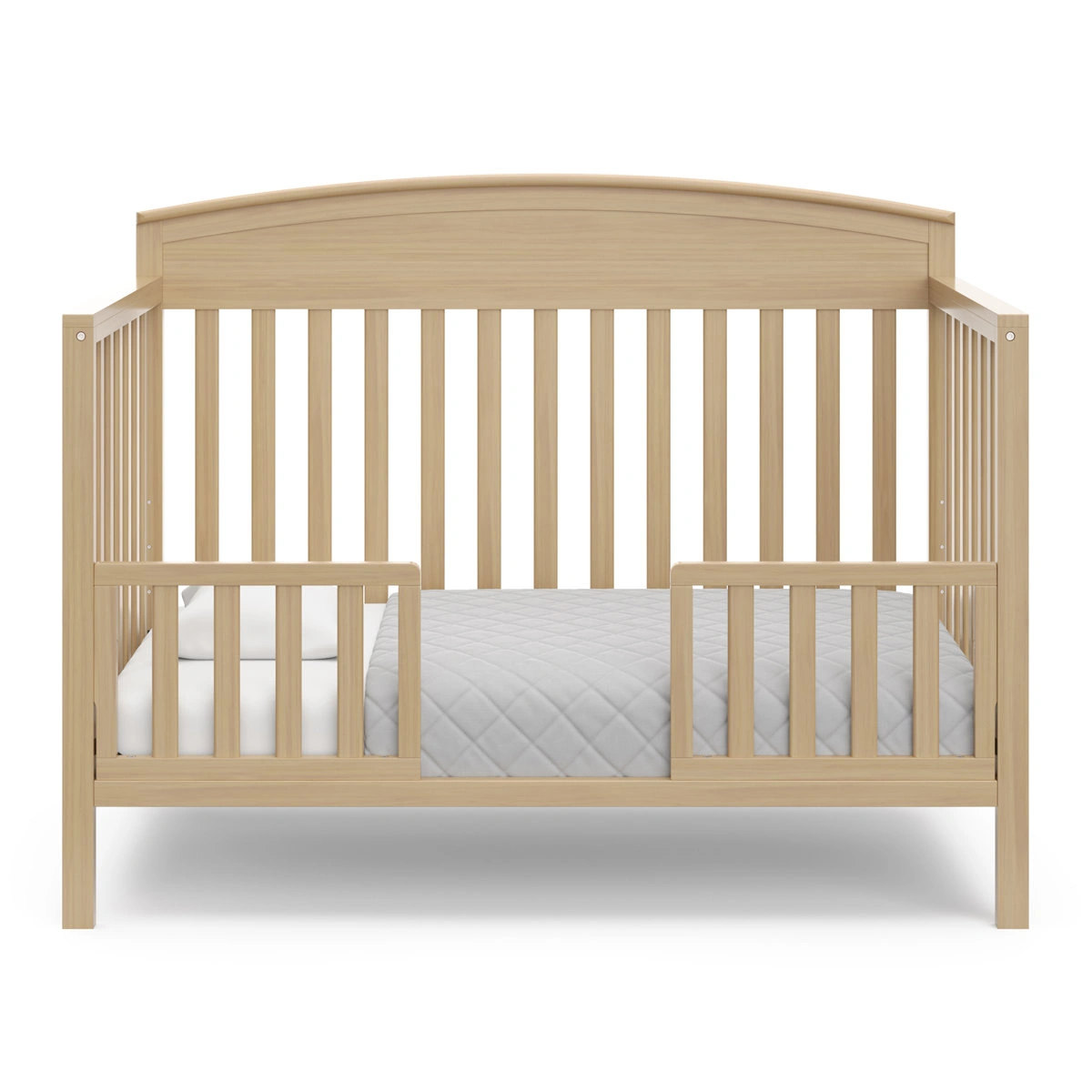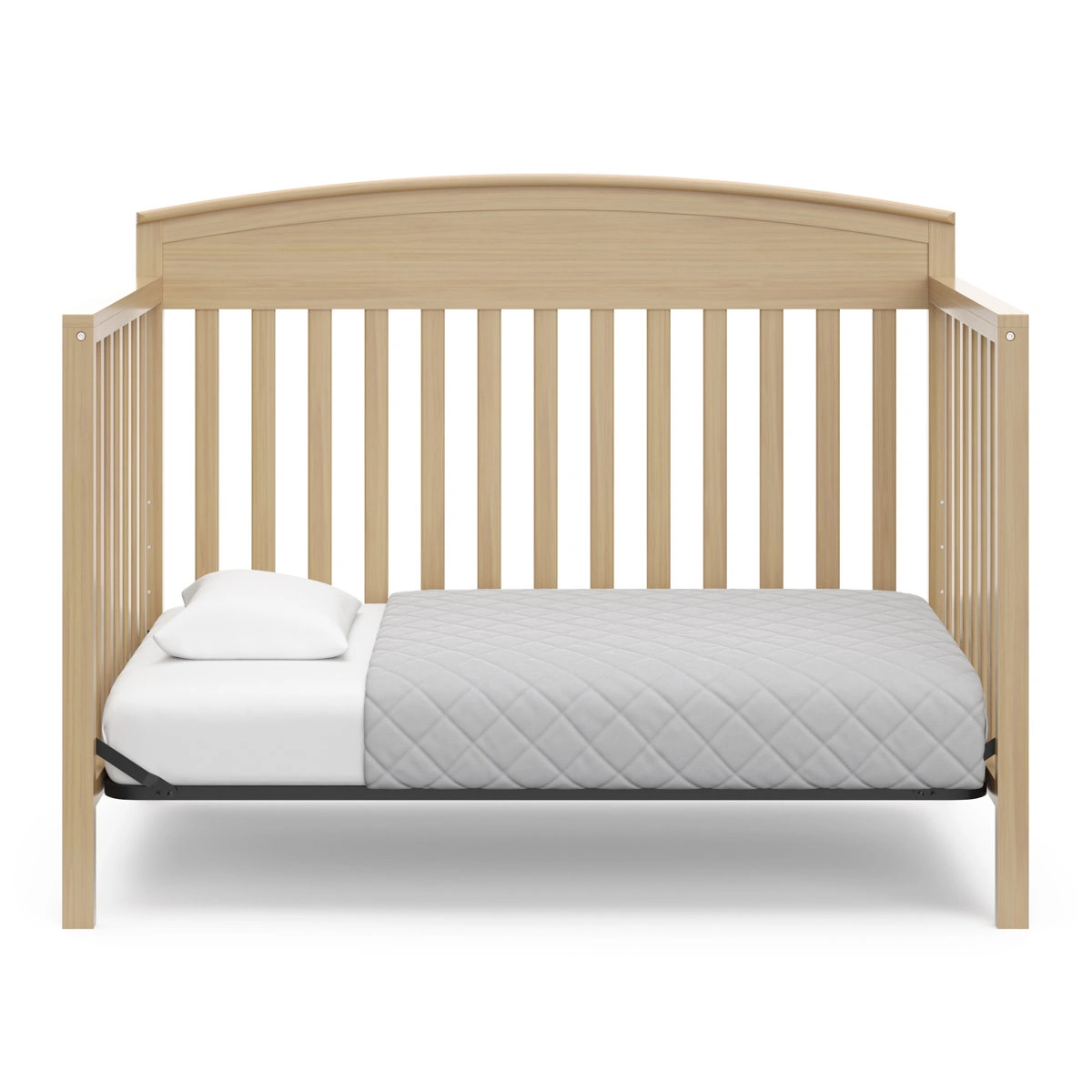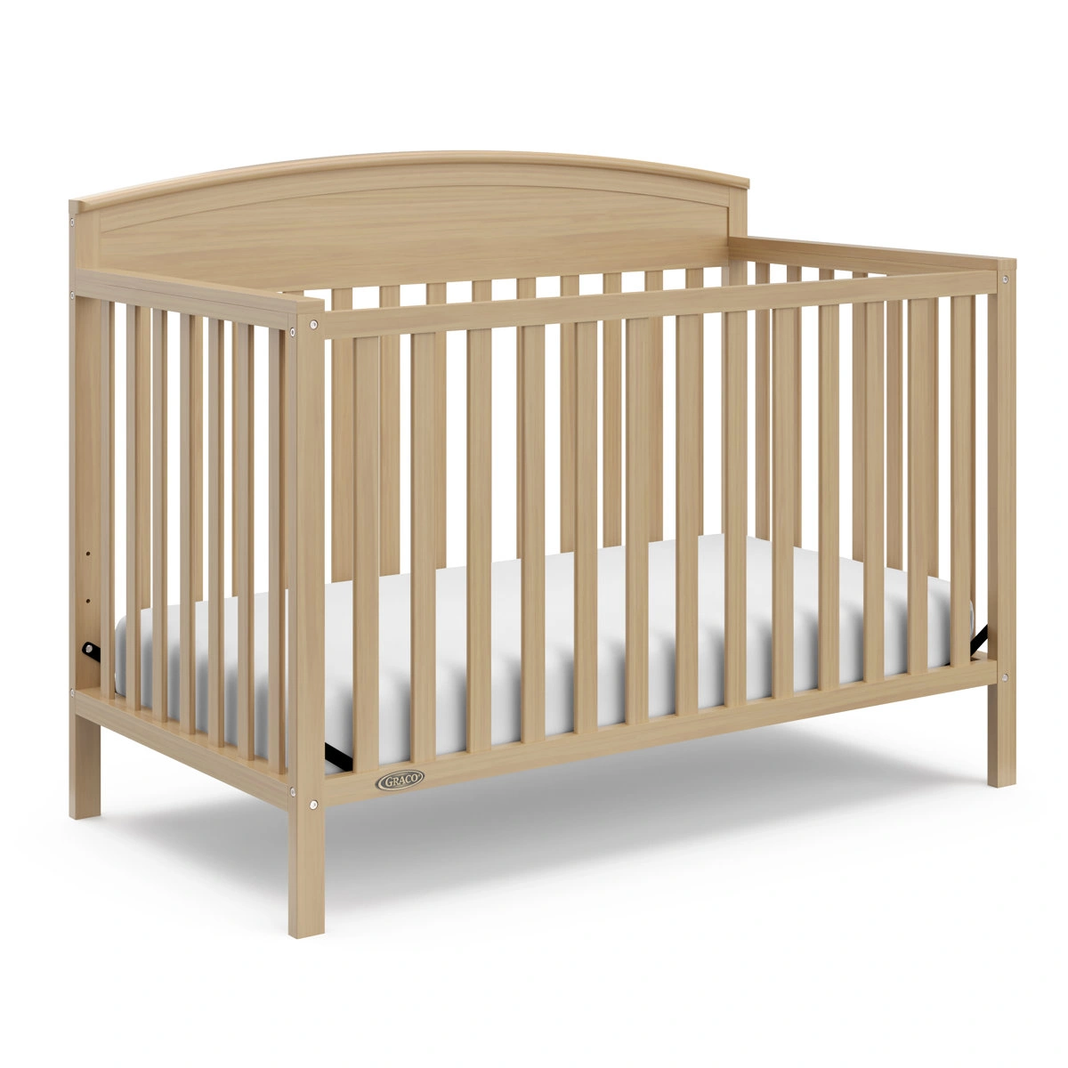 Description About This Product GR2263 Bring your dream nursery to life with the Graco Benton 5-in-1 Convertible Crib. With its classic, timeless design, the Benton is the perfect addition to any nursery – no matter your style. The Benton is crafted from pine wood, engineered wood, and wood composites, and its applied finish has been tested to meet or exceed the applicable ASTM and CPSIA safety standards. The Benton is GREENGUARD Gold certified — certified products are screened for more than 10,000 chemicals and VOCs known to pollute indoor air. Also, the Benton is JPMA certified — meaning it has been expertly tested by third-party, accredited laboratories to meet or exceed all of the applicable category voluntary and mandatory safety standards. Designed to adapt to your growing baby, the Benton is equipped with an adjustable mattress support base with 4 different height options, so the mattress support base’s position can be lowered as your child grows [please note, this crib may only be used until your child can easily climb out or is taller than 35 inches (89 cm)]. To support your child’s journey from babyhood to toddlerhood and beyond, the Benton can be converted from a crib to a toddler bed [compatible Graco toddler safety guardrail kit (slats) – 01340-60 series sold separately)], daybed, and full-size bed with headboard and optional footboard (compatible full-size bed conversion kit sold separately). The Graco Benton 5-in-1 Convertible Crib is designed to accommodate any standard full-size crib and toddler mattress (mattress sold separately – we recommend any Graco crib mattress). Graco is the proud recipient of the Parent Tested Parent Approved (PTPA) Seal of Approval for nursery and children’s bedroom furniture, and the 2021-2023 Women's Choice Award for 9 out of 10 recommended baby and kids furniture. Backed by a 1-year limited manufacturer’s warranty. Assembly required. Mattress, guardrail kit, and full-size bed conversion kit are each sold separately. Features 5-IN-1 CONVERTIBLE CRIB: Converts from baby crib to toddler bed [compatible Graco Toddler Safety Guardrail Kit (Slats) – 01340-60 Series sold separately)], daybed, and full-size bed with headboard & optional footboard (compatible full-size conversion kit sold separately) GREENGUARD GOLD CERTIFIED: Certified products are screened for more than 10,000 chemicals and VOCs known to pollute indoor air 4 DIFFERENT MATTRESS HEIGHT OPTIONS: Innovative "newborn" height option to conveniently provide parents with an easier access to their newborn MATTRESS IN A BOX: Certified formaldehyde free; Fibreglass free; Free of chemical flame retardants; For optimal performance, allow mattress to expand immediately upon delivery in room temperature setting for up to 48 hours, to allow for full expansion CERTIPUR-US CERTIFIED FOAM: Certified flexible polyurethane foams meet CertiPUR-US program standards for content, emissions and durability, and are analyzed by independent, accredited testing laboratories WATERPROOF SLEEP SURFACE: Designed to keep your crib mattress dry, clean, and cozy MACHINE-WASHABLE, DRYER-FRIENDLY: Designed for real life in the nursery, this durable crib and toddler mattress protector is machine-washable and dryer-friendly. To wash the mattress protector, wash in cold water (delicate cycle only) and tumble dry on low heat (or hang to dry).