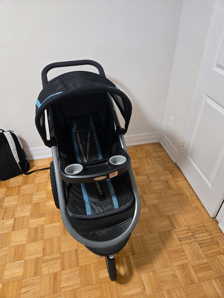 18Selling a Graco Click Connect jogging stroller. It's in good condition and ready for your little one's adventures! Features include a smooth ride and convenient click connect system for car seat compatibility
