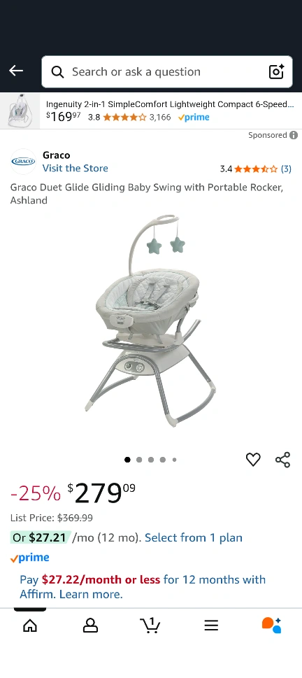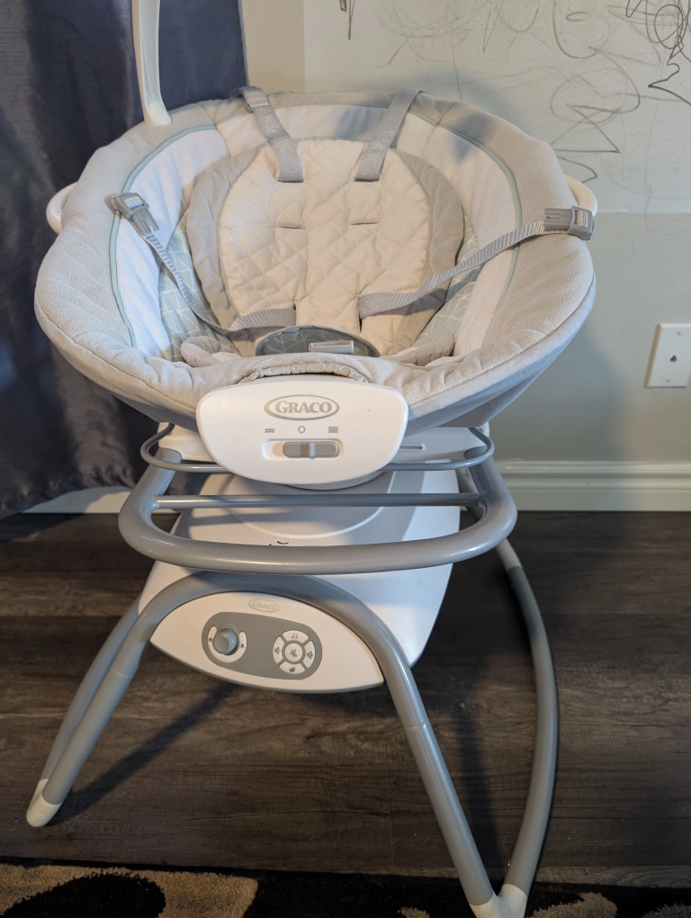 I'm selling a Graco Duet Glide Gliding Baby Swing with Portable Rocker in Ashland. It's in great condition and ready for a new home! This swing is perfect for soothing your little one with its gentle gliding motion. It also features a portable rocker, making it easy to move your baby from room to room. Owned by Pet-free and Smoke-free home.