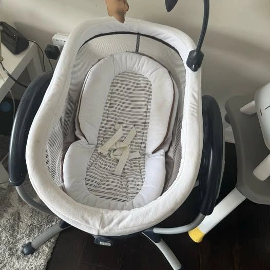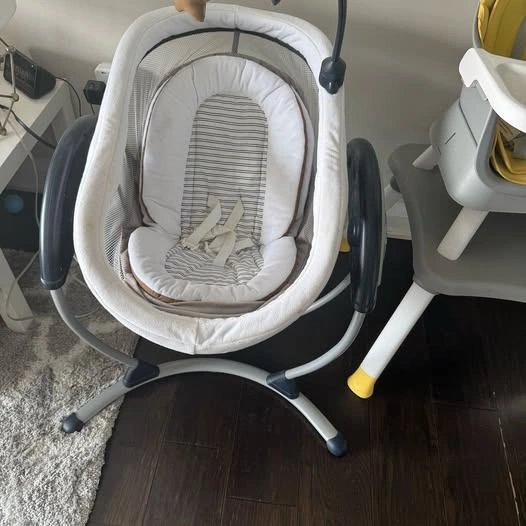10This premium baby swing cum bassinet is designed to keep your little one soothed, comfortable, and entertained — all in one sleek and safe setup. Lightly used and in great condition! ✨ Key Features: • 6-speed adjustable swinging motion – find the perfect rhythm to calm your baby • Soothing built-in music – plays gentle melodies to relax and engage your little one • 3-position recline – for feeding, playing, or napping comfort • Soft, striped padded seat – removable and washable for easy cleaning • Breathable mesh sides – keep airflow going and allow clear visibility • Plush mobile toys – for visual and sensory stimulation • 5-point safety harness – keeps your baby secure at all times • Stable and stylish frame – with anti-slip feet for extra security 🧼 From a smoke-free and pet-free home 🚗 Easy Mississauga pickup – ready to go!