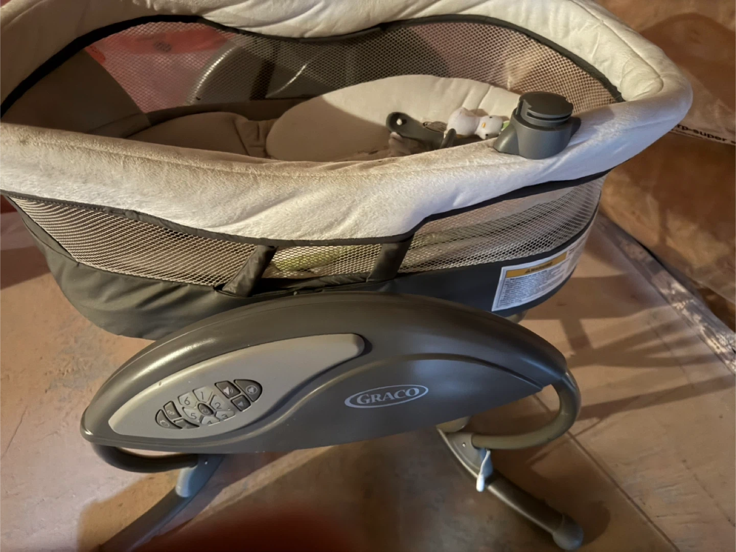 Selling a Graco Duoglider Swing in white and black! It's in great shape and ready for a new home. This swing is perfect for keeping your little one comfortable and entertained