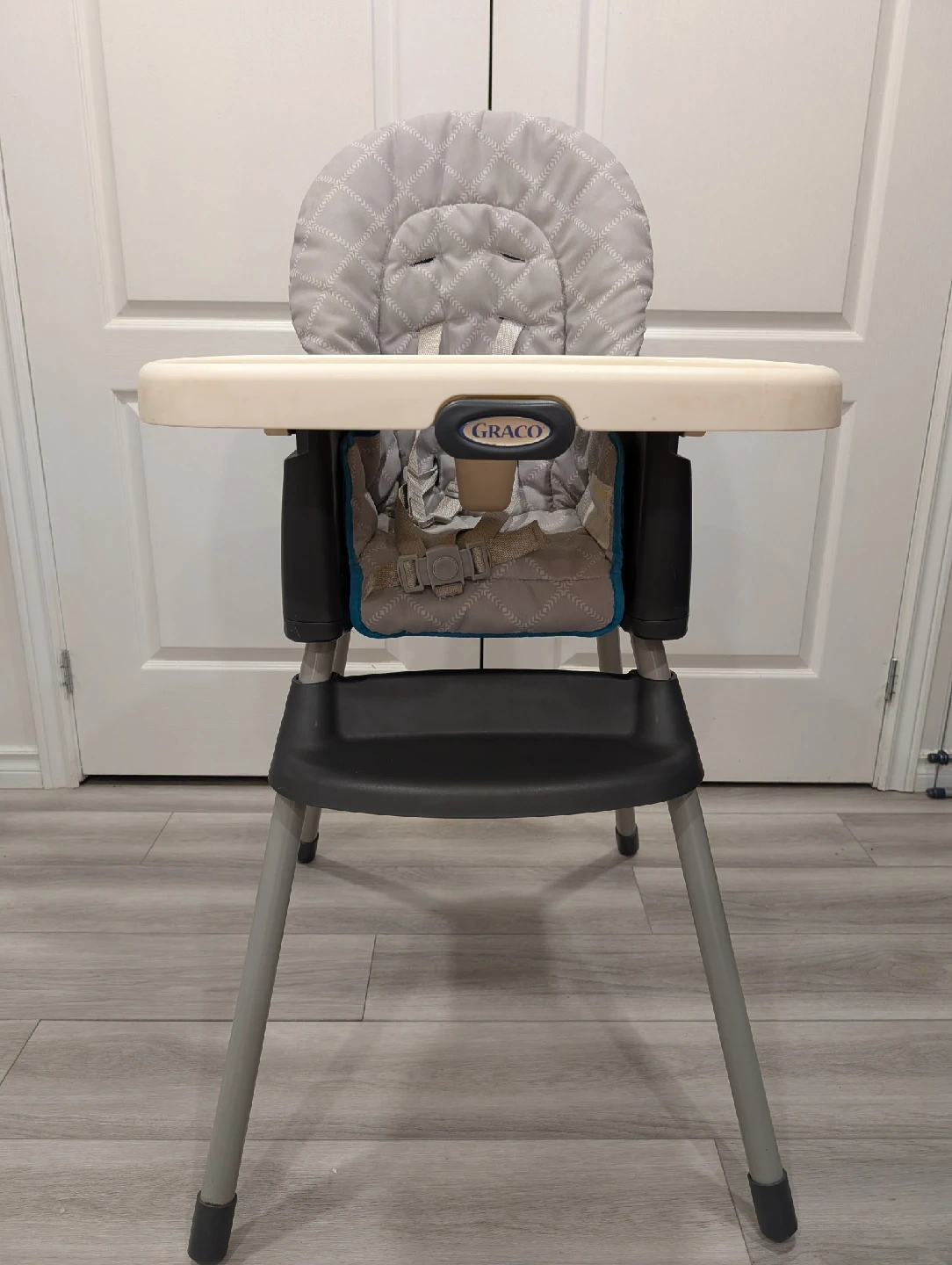 10Selling a Graco high chair that's in good condition. It has a removable tray for easy cleaning and a comfortable seat for your little one. The adjustable straps ensure your child's safety during mealtimes