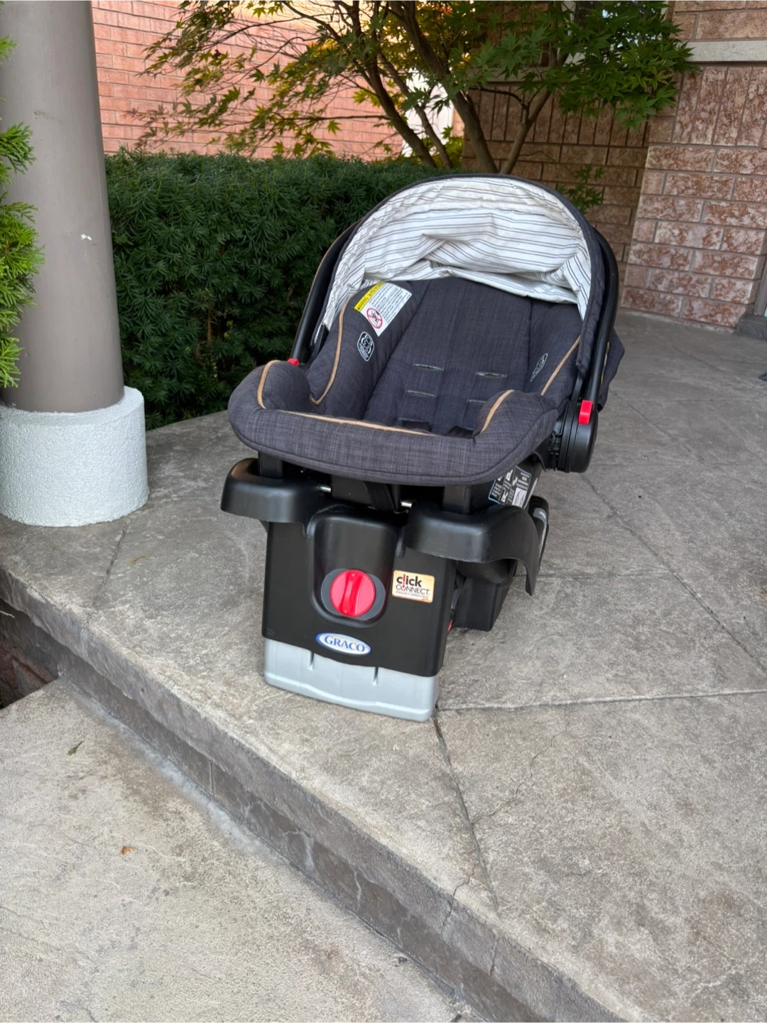 75Selling a Graco infant car seat that comes with its base. It's in great condition and ready for a new little one. This car seat is side impact tested for safety and is easy to install with the click connect system. Perfect for keeping your baby safe and secure on the go!