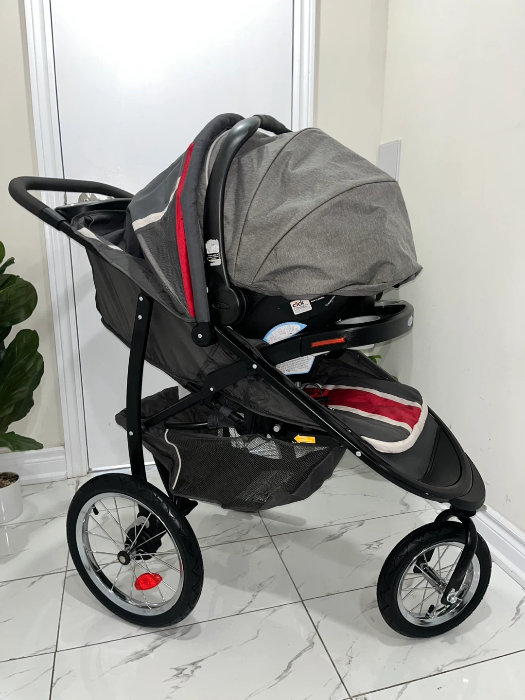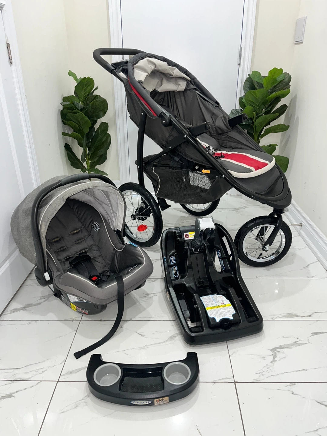 Selling a Graco Modes Jogger 2.0 Travel System with SnugLock 35 LX Infant Car Seat in Felix colour! This travel system includes the stroller, infant car seat, and the car seat base. It's in great condition and ready for a new family. Originally bought for $809.99 from Best Buy
