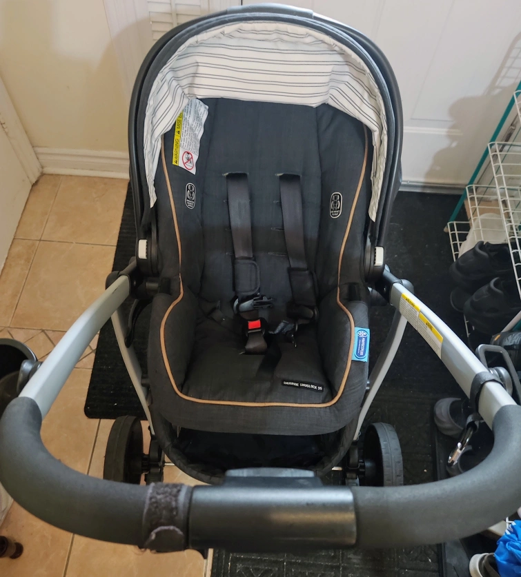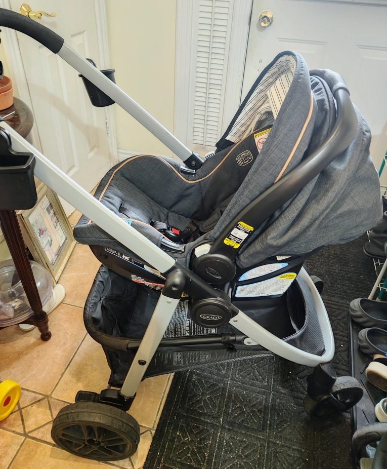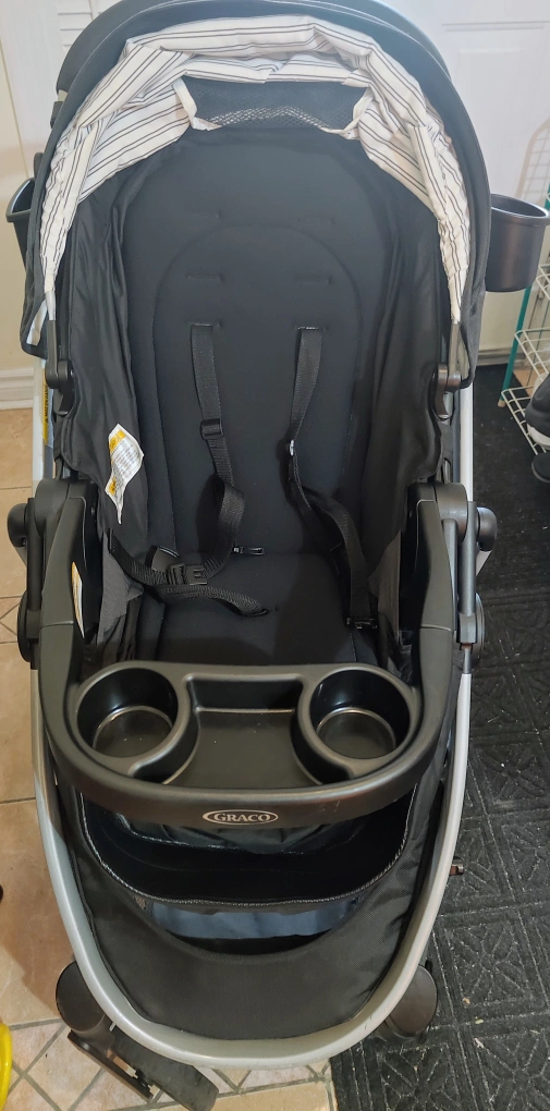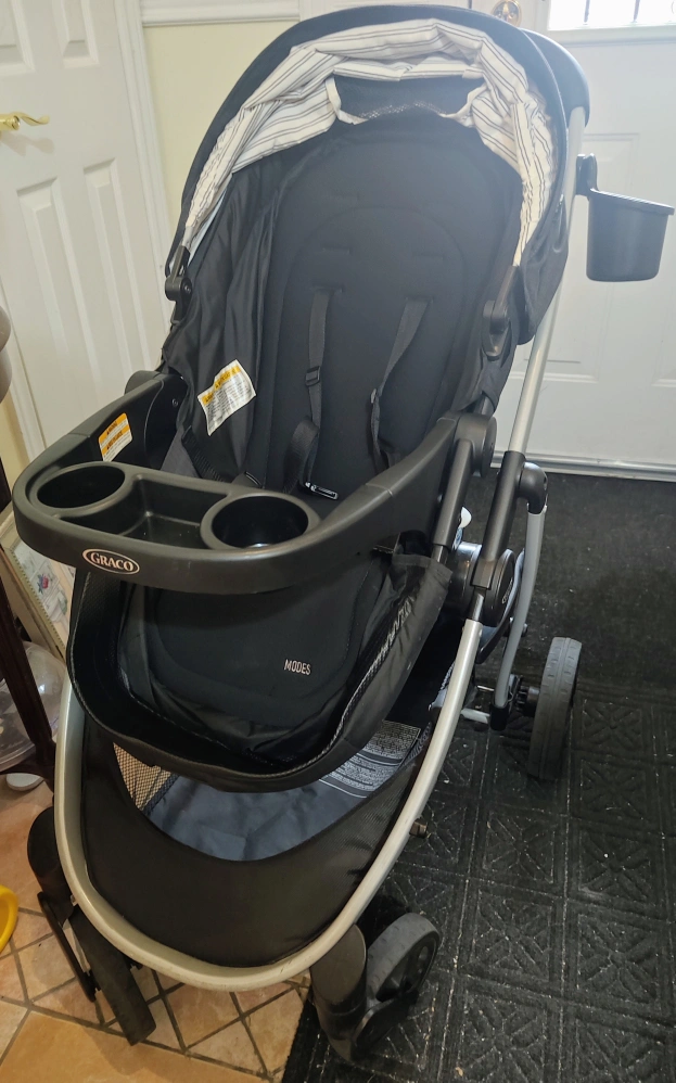 Selling a Graco Modes Travel System stroller in great condition! It comes with a convenient parent tray with cup holders and a large storage basket underneath for all your essentials. The stroller seat can be converted into a bassinet for newborns, and it's compatible with Graco infant car seats. It's perfect for growing families
