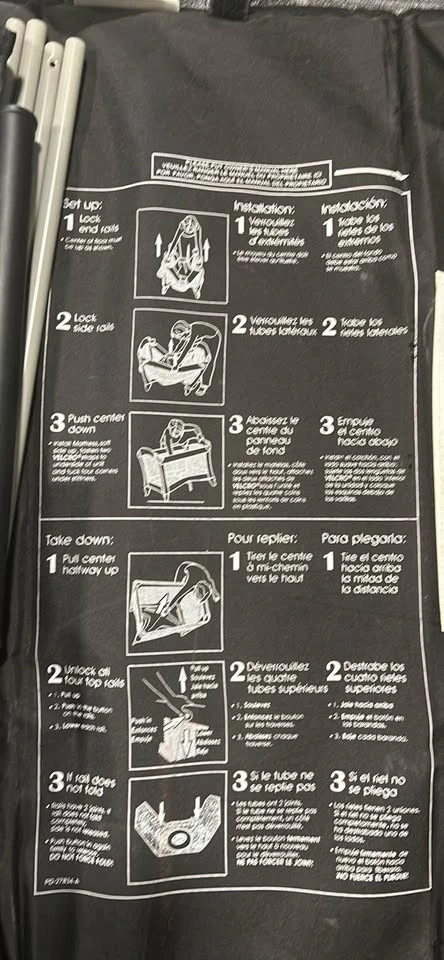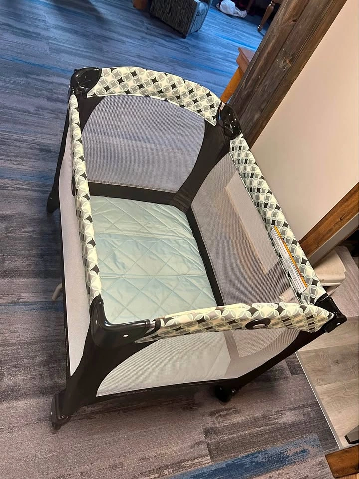 15No longer need, in great condition, no rip or tears in the mesh or anywhere, comes with the change table and has two height options. Instructions are located in pictures.