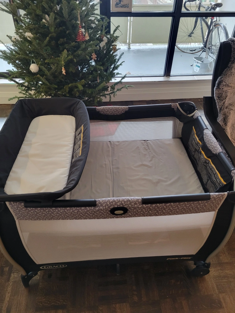 440Graco Pack 'n Play playard. Includes a changing table and mattress that was purchased separately. can be used as a crib. easy to transport for cottage trip. :) more details (bassinet has been given to someone) Graco Pack 'n Play Day2Dream Bassinet Playard, Rainier https://a.co/d/gJH0V1D Assembly instruction https://youtu.be/a9YDNuCDDd4?si=uBhDKcjUscfvy7yx matress cover is free.