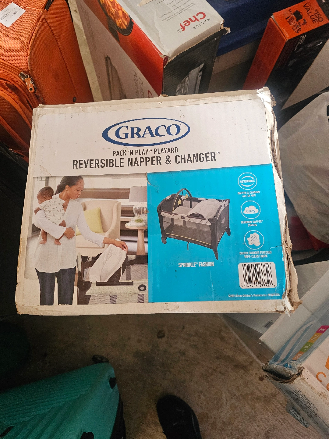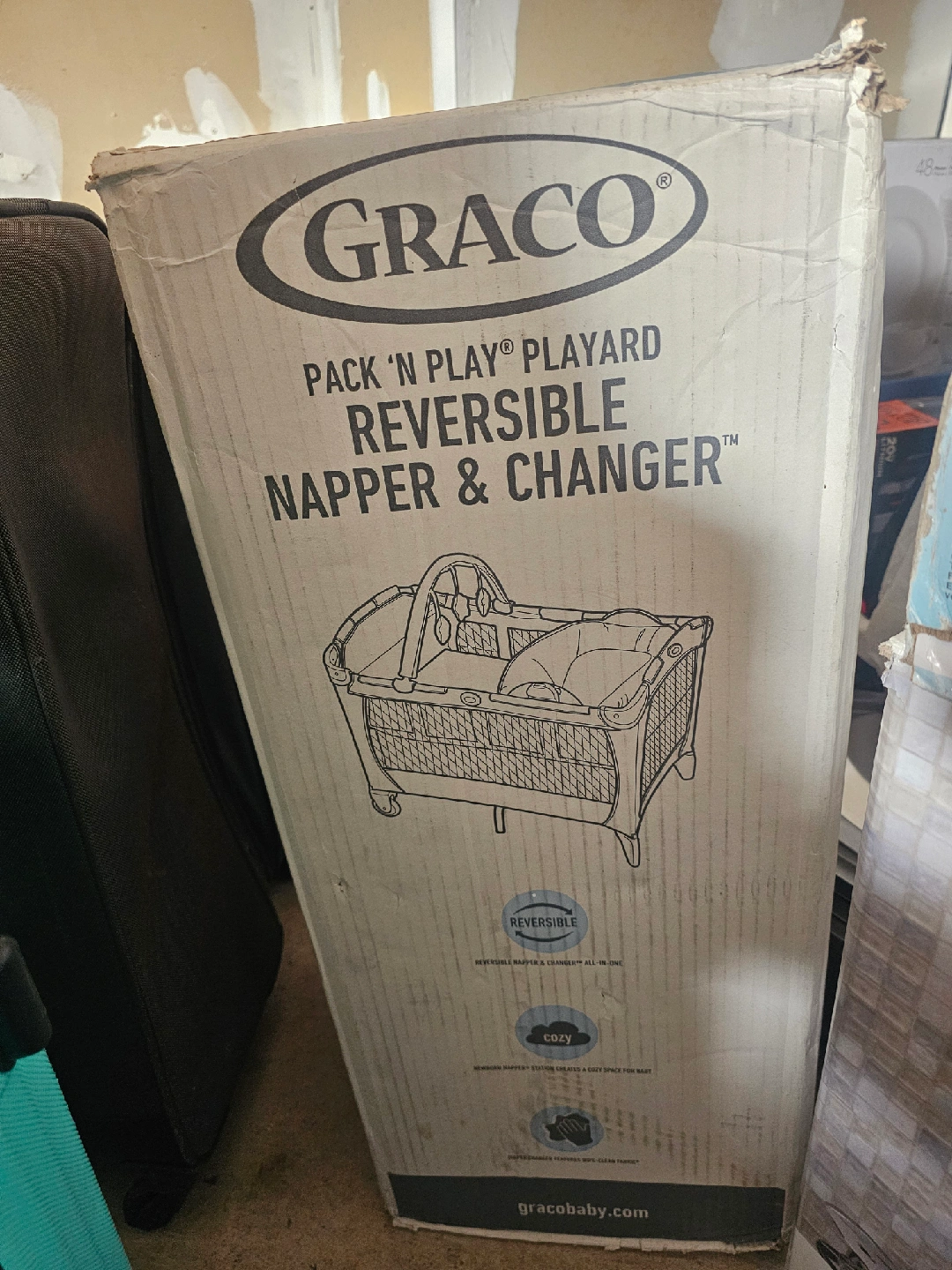 60Selling a Graco Pack 'n Play Playard with Reversible Napper & Changer. It's in good condition and comes in the original box! This playard is perfect for keeping your little one cozy and safe, with a convenient reversible napper and changer all-in-one.