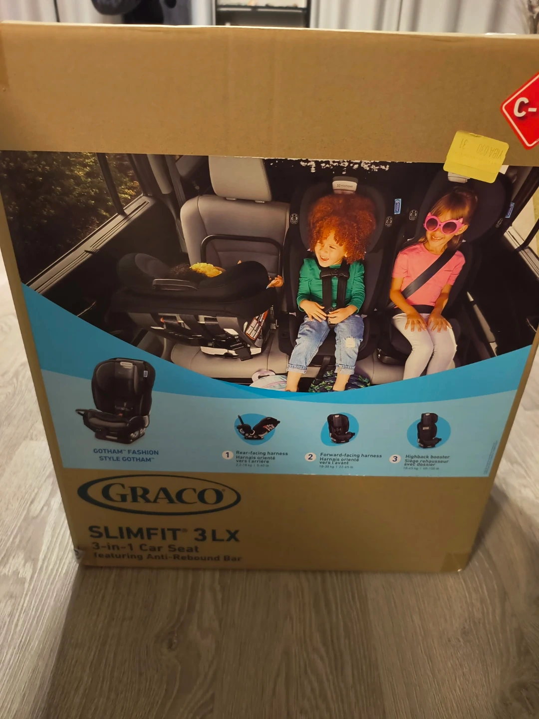 65Selling a brand new in box Graco Slimfit 3 LX 3-in-1 car seat! This seat is designed to fit 3 car seats across in your vehicle. It transitions from a rear-facing harness (2.2-18 kg), to a forward-facing harness (10-30 kg), to a highback booster (18-45 kg). The box includes the car seat with anti-rebound bar.