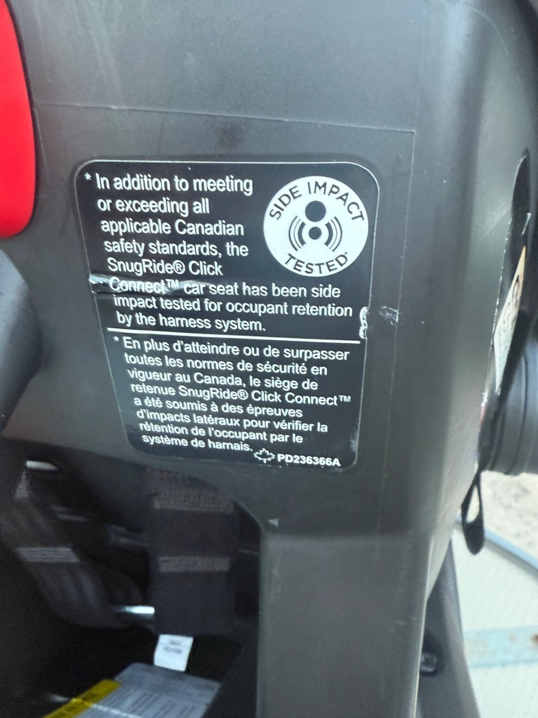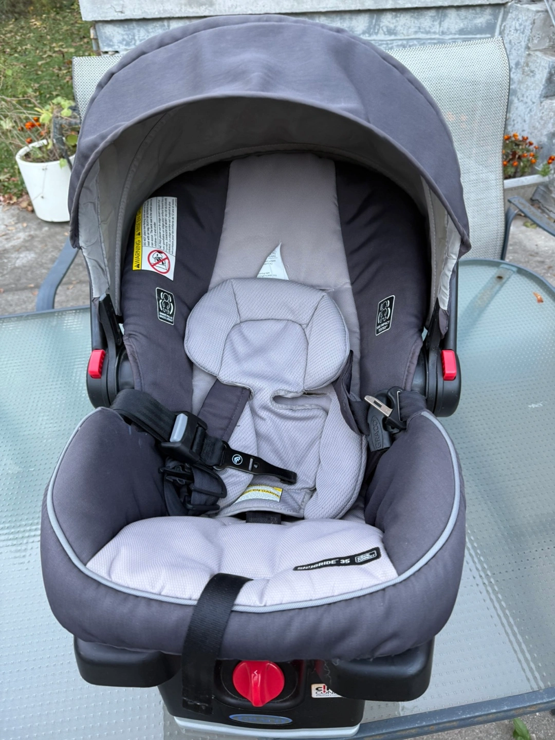 36Selling a Graco SnugRide Click Connect 35 infant car seat! It's in great condition and ready for a new little one. This car seat is designed to meet or exceed Canadian safety standards, ensuring your baby's safety during travel